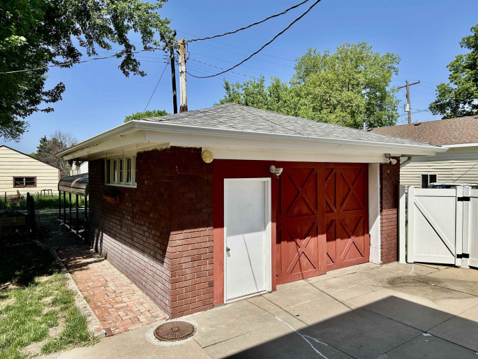 There is so much to love about this beautiful 2 story brick home with a lot of original charm! Walk into the living room with wood floors, built-ins and a fireplace. Then into the formal dining with a built-in buffet and display hutches. Off of it there is a main floor family room which is open to the kitchen and a half bath. Upstairs there are 4 bedrooms and a full bath. Downstairs there is lots of storage, a family room and laundry room with a shower. It sits on a nice size lot with a shed, a 2-car attached garage, and a 1 car detached garage, plus car port behind it.