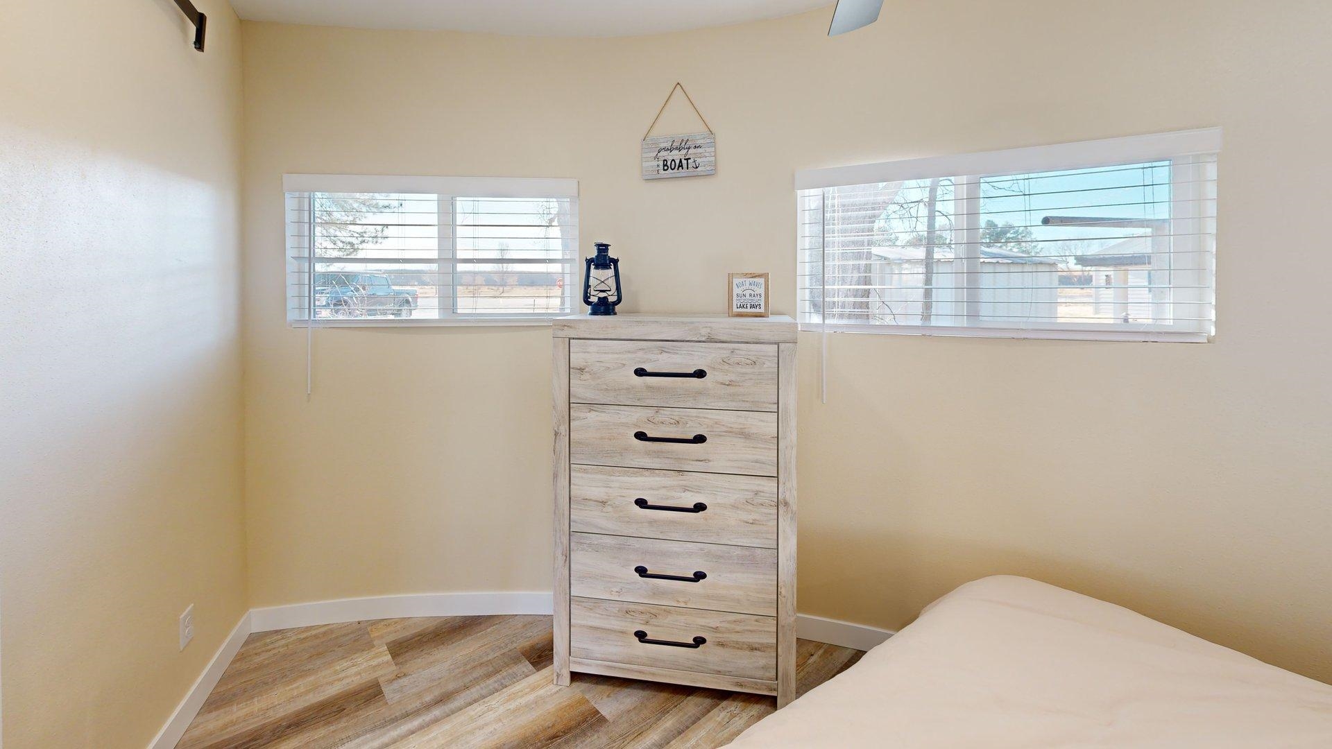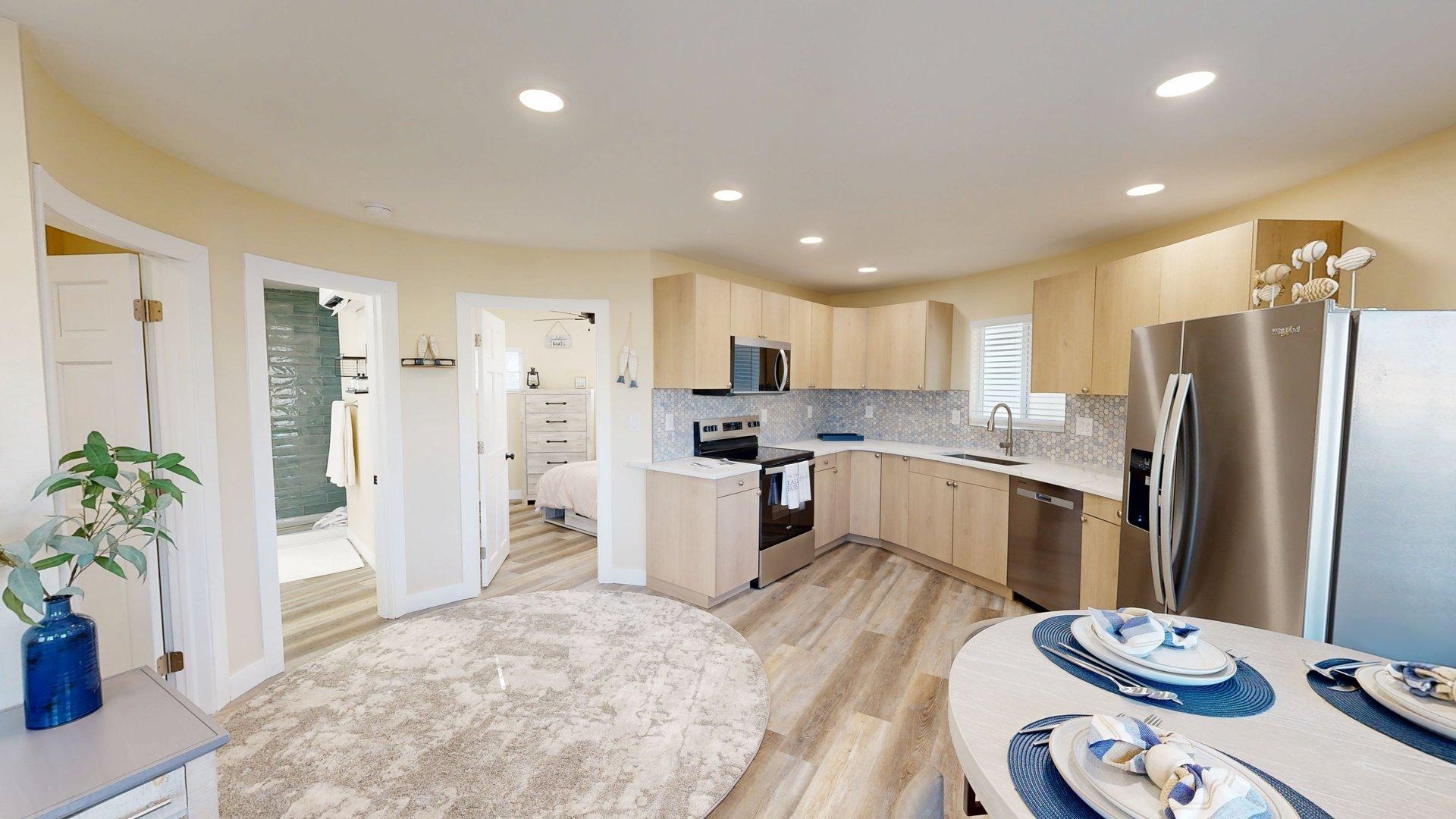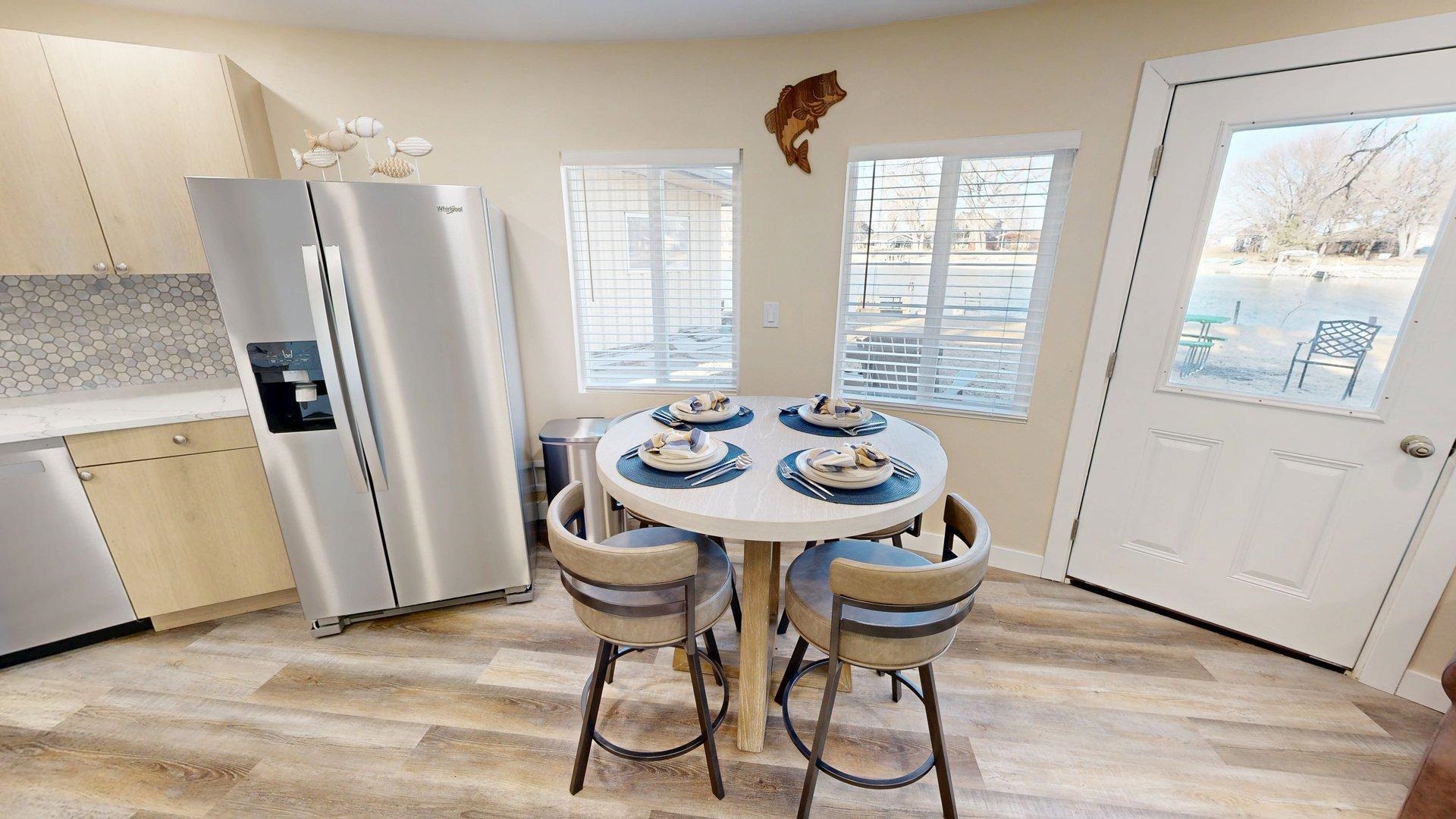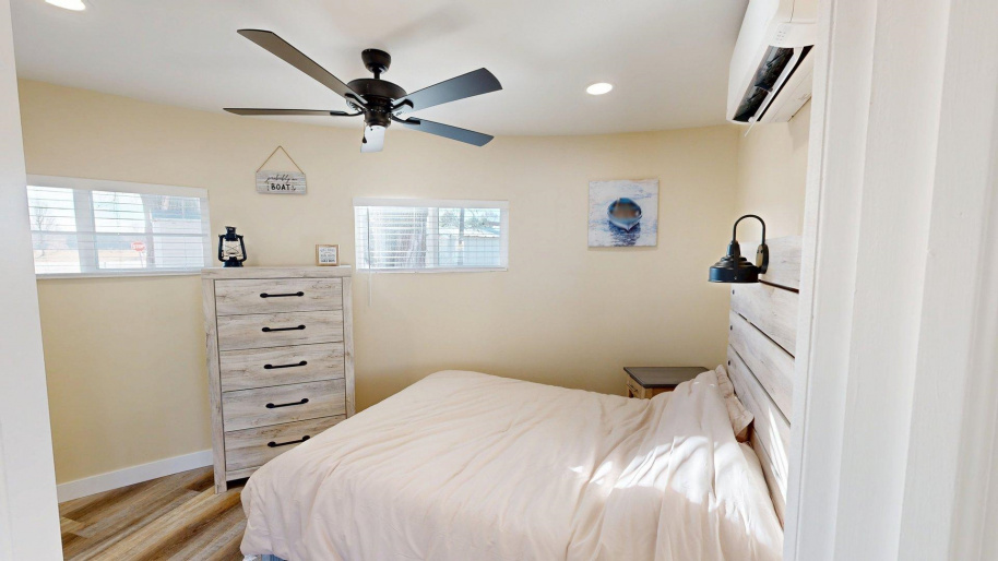 This home is part of our Red Bow Campaign — a seasonal event featuring limited-time price incentives. The red bow in the first photo marks homes offering special holiday savings, available only through January 1. After that, the savings are gone! Modern comfort meets lakeside charm in this completely reimagined round cabin on Mallard South Bay. Once a rustic hideaway, this home has been thoughtfully rebuilt from top to bottom and is being sold fully furnished. From the fresh exterior siding and new windows to the efficient mini-split heating and cooling systems, every detail has been upgraded with comfort and style in mind. Inside, the open-concept layout features all-new flooring and a bright, inviting atmosphere. The modern kitchen includes stone countertops, brand-new appliances, and thoughtful design details. The updated bathroom offers a tiled shower, contemporary finishes, and a convenient stackable washer and dryer. Two bedrooms and an open living space provide comfortable sleeping arrangements for up to six guests. A deep lot provides room to relax or entertain, with a newly poured concrete pad under the attached carport, a fresh gravel driveway, and a wraparound sidewalk leading to the welcoming front patio. A brand-new floating dock is ready for lake season, and the 50-amp hookup on the back of the home makes it easy to host guests with a camper or motorhome. Located in a peaceful no-wake cove, this property offers ideal conditions for swimming, kayaking, paddleboarding, and easy access to the main lake. This is a rare opportunity to own a fully rebuilt, turnkey cabin at Johnson Lake—offered at a special price for a limited time as part of the Red Bow Campaign.