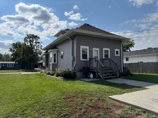 One of a kind 1 1/2 story home with 3 BR and 1 bath on a full newer basement with egress window and with some great history. It has unique woodwork and trim, original wood floors, alley access with extra parking spaces in front and back. Newer roof, siding, gutters and vinyl siding and a full unfinished basement (plumbing is there for an additional bathroom). Replaced front porch steps and new back steps. Good landscaping with a storage shed. This house was moved onto a new poured foundation 17 years ago. One owner since the move. Office area by stairway with bay window. Lots of cute features.