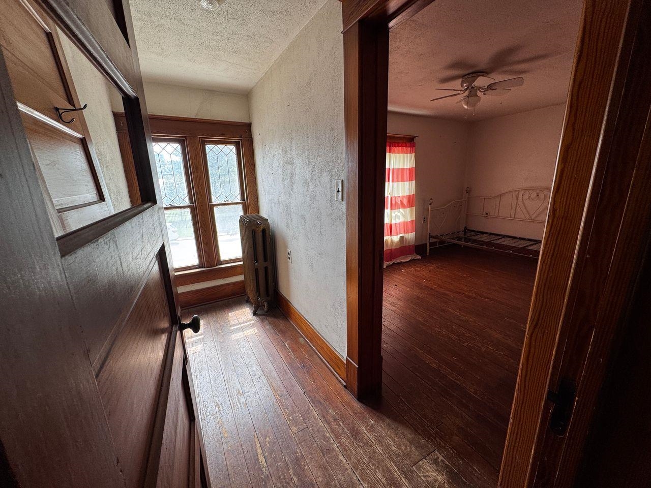 Two-Story Home Loaded with Character on a Large Corner Lot– Spacious two-story property situated on a large corner lot, featuring original woodwork, leaded glass windows, and radiator heat. 3 bedrooms and 1 bath located on the upper floor and a three quarter bath/laundry on the main. Generous room sizes throughout provide flexibility for future updates or reconfiguration. The home retains much of its historic character and offers strong potential for improvements. An excellent opportunity for investors or buyers seeking a property with classic details and room to add equity.