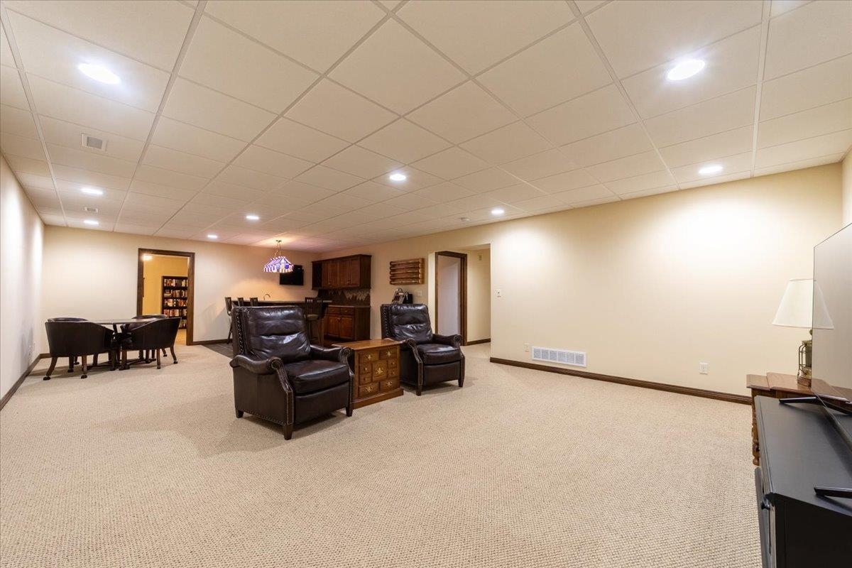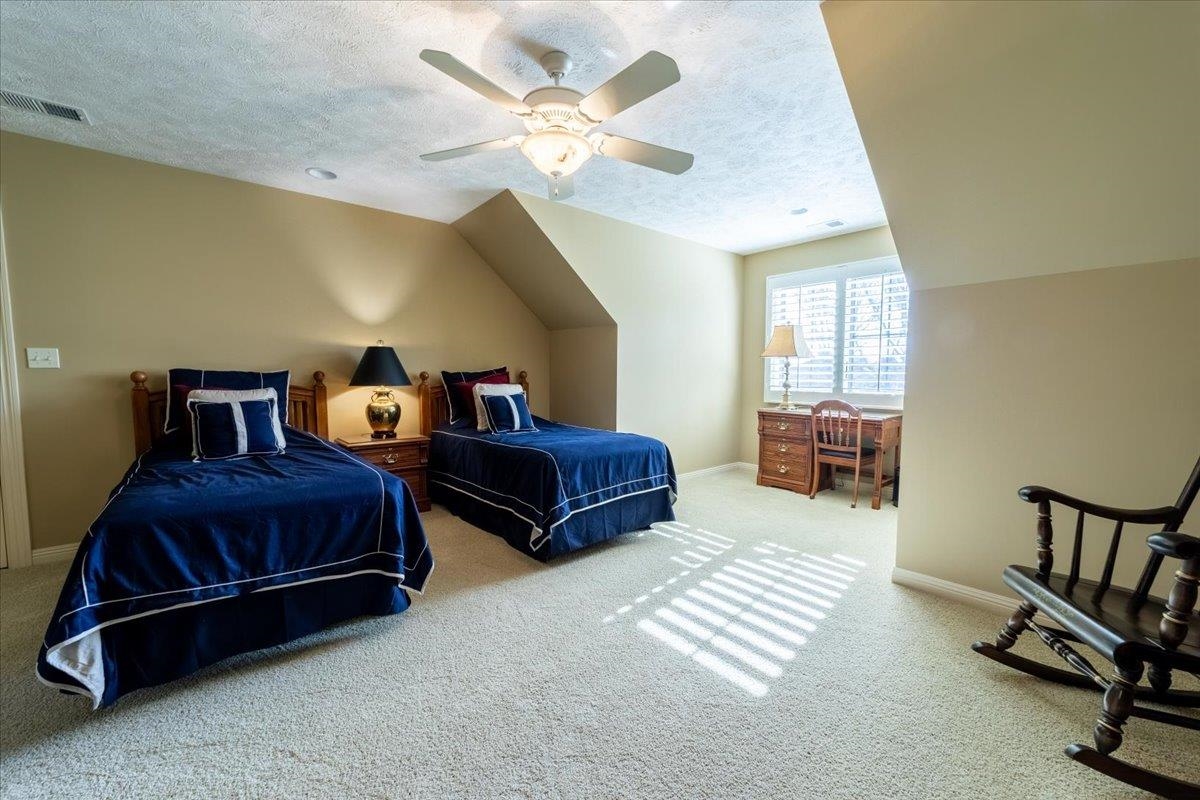 Welcome to this stunning 1.5-story brick home located in Lochland Meadows, where timeless architecture, top-quality construction, and meticulous care come together to create a truly exceptional property. From the moment you arrive, you will appreciate the curb appeal, lush landscaping, and thoughtful upgrades that make this residence stand out. Every detail has been carefully designed to provide comfort, convenience, and elegance, offering a rare opportunity to own a home that blends sophistication with livability. Step inside the entryway and be greeted by an inviting, open floor plan that flows seamlessly throughout the main level. The heart of the home is the gourmet kitchen, designed to impress even the most discerning chef. Here you’ll find an abundance of custom, top-quality cabinetry, solid surface countertops, a large center island, and a breakfast bar for casual dining. Built-in appliances, a walk-in pantry, and thoughtful storage solutions make the kitchen both beautiful and functional. The kitchen opens directly to the spacious great room, where wood floors, large windows, and a stunning stone gas fireplace create a warm and welcoming space for gatherings. Entertain in style with a formal dining room perfectly suited for holiday dinners or special occasions. A main floor office provides the ideal spot for working from home or managing daily tasks. The private main floor primary suite is a true retreat, featuring a large bedroom, luxurious bath with dual sinks, jetted tub, separate shower, private water closet, and a generous walk-in closet. Guests will appreciate the conveniently located powder room on the main floor. A large mudroom includes washer, dryer, freezer, and abundant space to keep everything organized. Upstairs and downstairs, the home continues to impress. The expansive finished basement offers incredible versatility, with a large recreation room complete with a wet bar for entertaining, a fifth conforming bedroom, a sixth non-conforming bedroom, and a fifth bath. An exercise room with treadmill, a workshop, and plenty of storage provide space for hobbies, fitness, and more. Car enthusiasts and hobbyists alike will appreciate the 36’ x 48’ attached, heated three-car garage. Outfitted with epoxy floors, dual car vacuums, sink, and new MyQ smart garage door openers, this garage is not only practical but also beautifully finished. The exterior of the home is equally impressive. Recent updates include a new roof, new gutters, and durable steel siding along the back of the house for low-maintenance living. Enjoy outdoor living on the composite deck, complete with a motorized awning for shade and comfort. The mature landscaping is supported by an automatic sprinkler system, making yard care simple and efficient. Additional features elevate this home even further: home is hard-wired for a generator, tankless water heater, hard-wired sound system, and security system. The home has been fully insulated between all floors, enhancing both energy efficiency and privacy. Nine televisions with mounts are included, and a large portion of the furniture is available if desired. From the flawless maintenance to the thoughtful updates and premium features, this Lochland Meadows home offers unmatched value and comfort. Whether you are hosting large gatherings, enjoying quiet evenings by the fireplace, or taking in the serene outdoor spaces, this home is designed for both everyday living and entertaining. Truly move-in ready, exceptionally clean, and built with enduring quality, it represents an opportunity not to be missed. Schedule your private showing today and experience first-hand the elegance, functionality, and comfort that define this extraordinary residence.