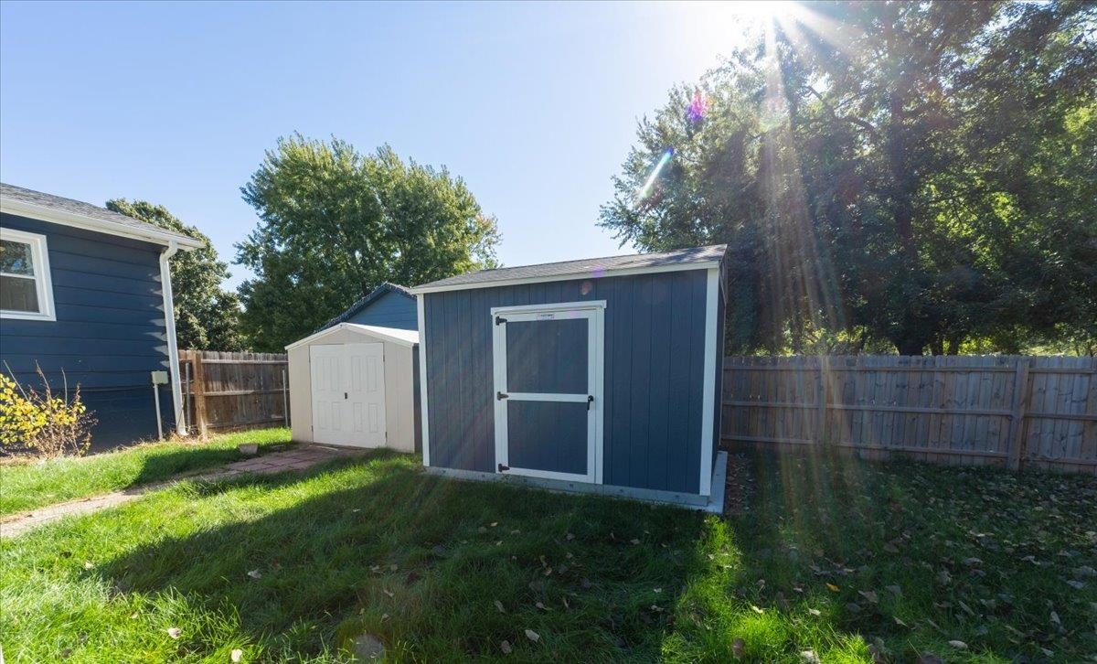 This is a lovely three-bedroom, two-bathroom split-foyer home. You will enjoy the spacious deck and backyard for years to come, not to mention that this home is within walking distance of the Theater District. Expensive updates have been done for you. The windows (2022), roof (2023), gutters (2023), garage door (2022), underground sprinklers (2022), water heater (2024), water softener (2022), and reverse osmosis system (2022) are all newer. For added convenience and parking, extra cement was poured next to the driveway of the one-car garage this year. Storage is not an issue for this home! The bedroom closets are a nice size, and the primary closet is a walk-in with built-in drawers. You will find a linen closet and coat closet as well. The backyard features a Tuff Shed, which was installed this year, as well as a second garden shed. The many updates are worth seeing, especially if you are looking for a home with quick, easy access to amenities, work, or schools on the west side of Hastings. Call for a showing today!