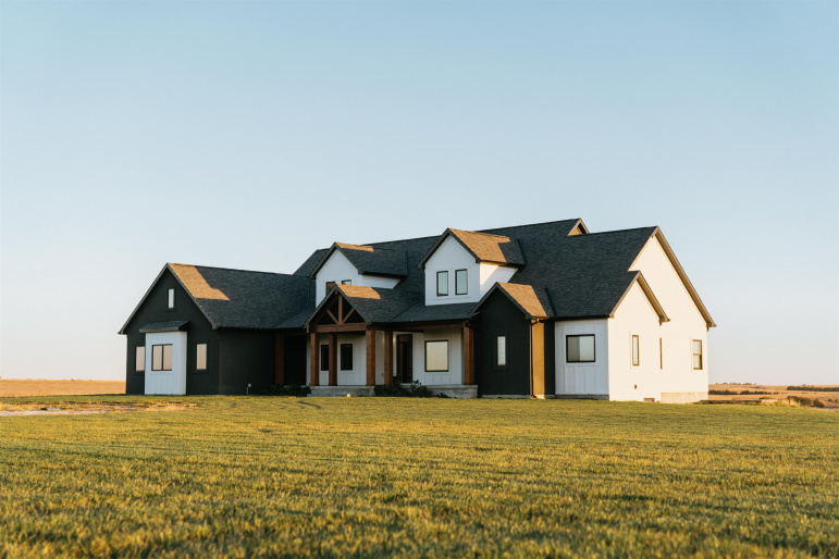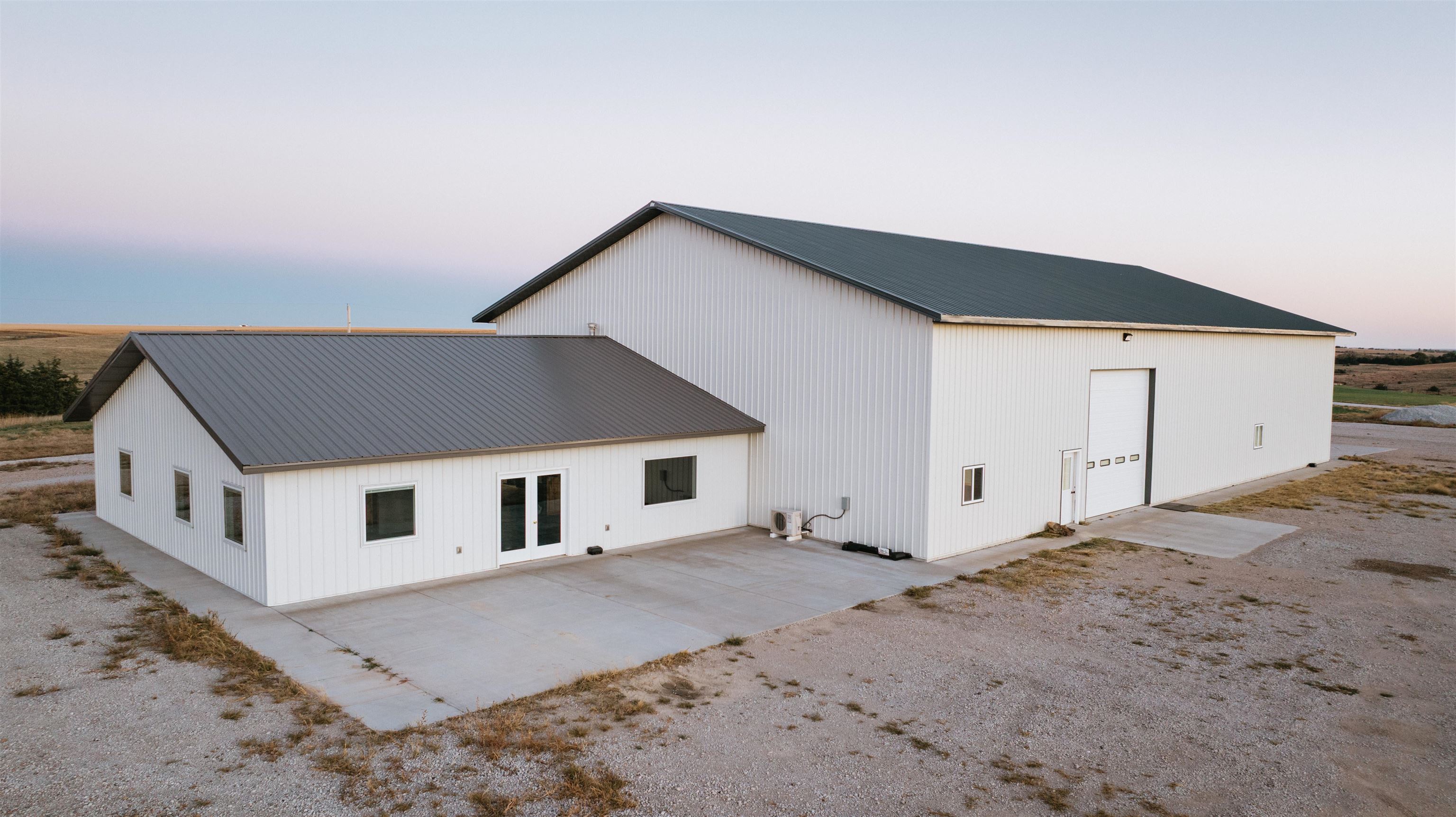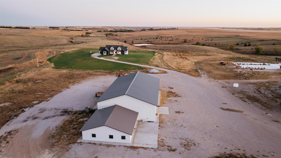 Situated on 15.27 acres south of Elwood, this impressive property offers space, quality, and versatility both inside and out. The 6,228 sq. ft. home features 6 bedrooms and 4.5 bathrooms, designed with an open layout and attention to detail throughout. It features a gourmet kitchen and a butler’s pantry with direct access to the formal dining room. The main living area is filled with natural light from the grand windows framing wide-open views. A locker area in the laundry room, and dedicated office add everyday functionality. The lower level includes a partial kitchen, exercise room, and walk-out access to a covered patio—ideal for entertaining or quiet evenings outdoors. Every closet is built with custom shelving, and each bathroom showcases unique tile and fixtures that add character throughout the home. A 3-car attached garage complements the residence, while the large, heated shop provides exceptional workspace with concrete floors, three oversized garage doors, a workbench, half bathroom, partial kitchen, carpeted office room, and upstairs storage. Attached to the shop is a fully finished office suite featuring multiple rooms, built-in cabinetry, a full kitchen with a 16-inch gas stove, full bathroom, and epoxy flooring. Whether used as a private residence, business headquarters, or combination of both, this property offers a rare opportunity to live and work in one exceptional setting surrounded by open Nebraska countryside. Call to set up your private showing!