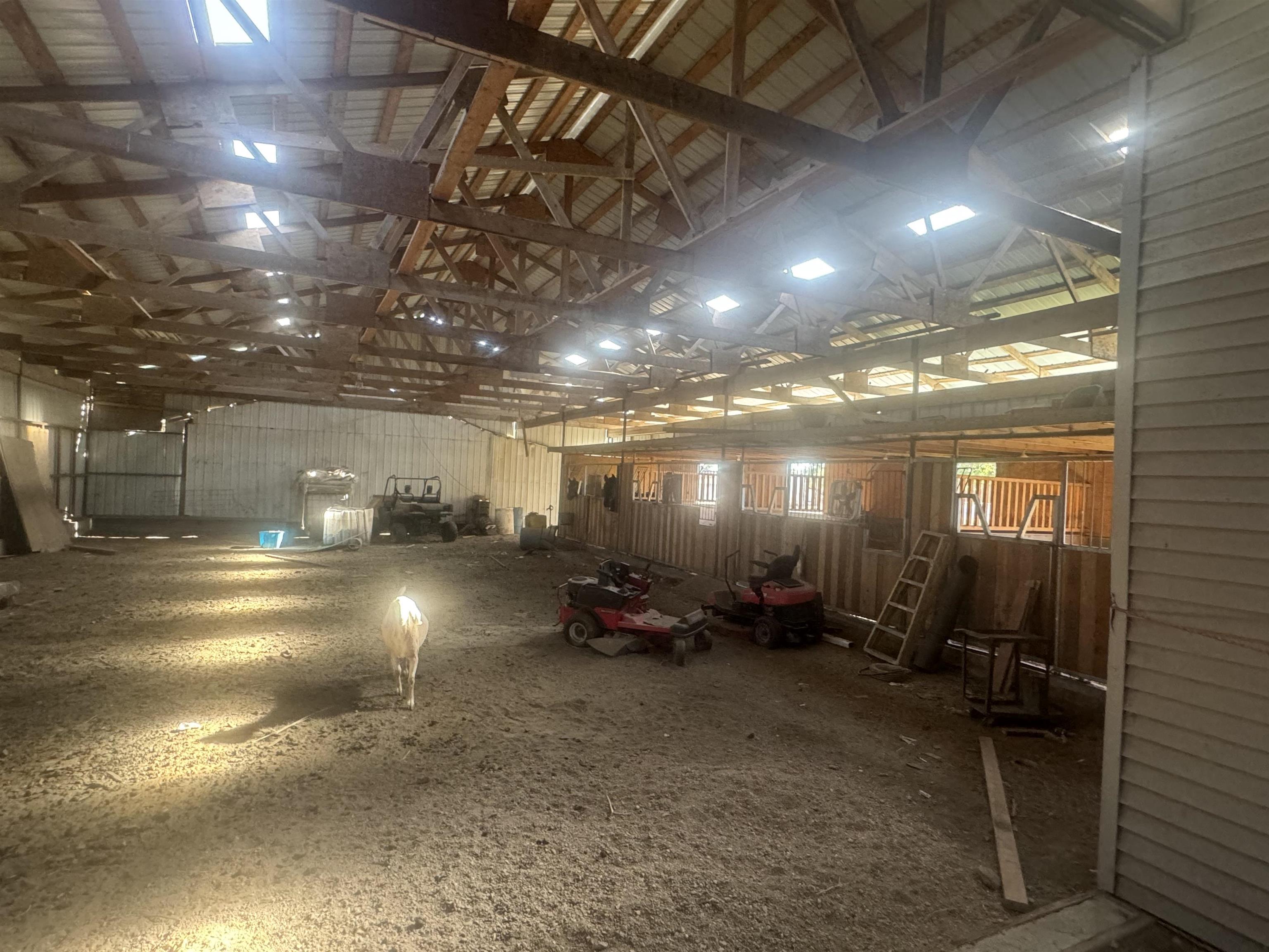 Set on just over 5 acres, this spacious 5-bedroom, 2-bath home offers the perfect balance of comfort, function, and country living. The open kitchen and dining area features tile flooring, an electric range, dishwasher, and plenty of space for gatherings. The living room, complete with a wood-burning fireplace, creates a cozy spot to relax and unwind. The main level hosts three bedrooms, including a generous primary suite with a walk-in closet, plus an office and convenient main-floor laundry. The basement adds even more living space with two additional bedrooms and room to expand. Enjoy the outdoors with a patio, storage shed, and outbuilding, complete with horse stalls, ideal for hobbies or extra storage. An attached 2-car garage completes this move-in-ready property with plenty of room for everyone and everything, inside and out. With central air, gas forced air heat, and baseboard backup, comfort is built in year-round. Schedule your private showing today and come see all this acreage has to offer!