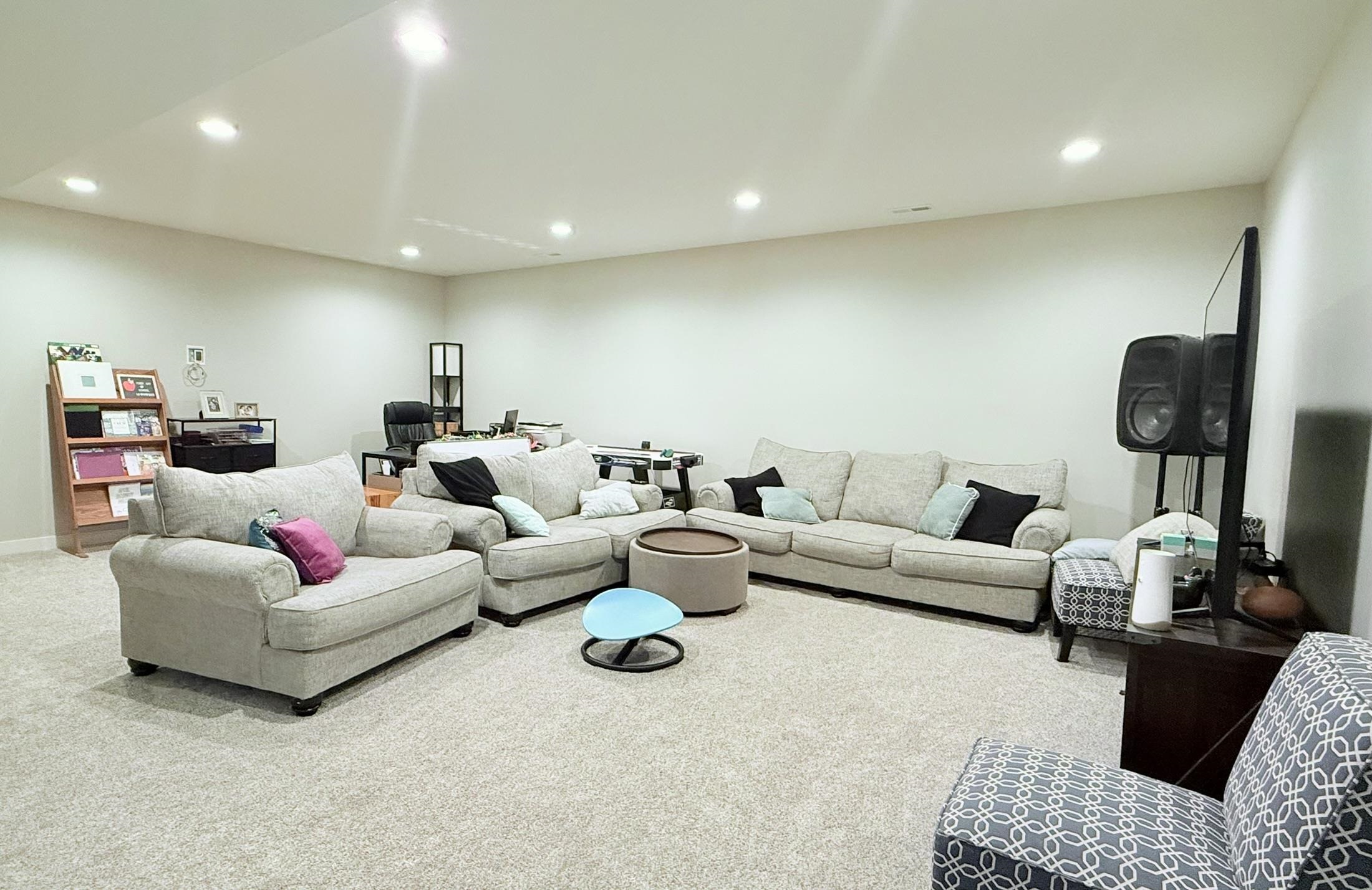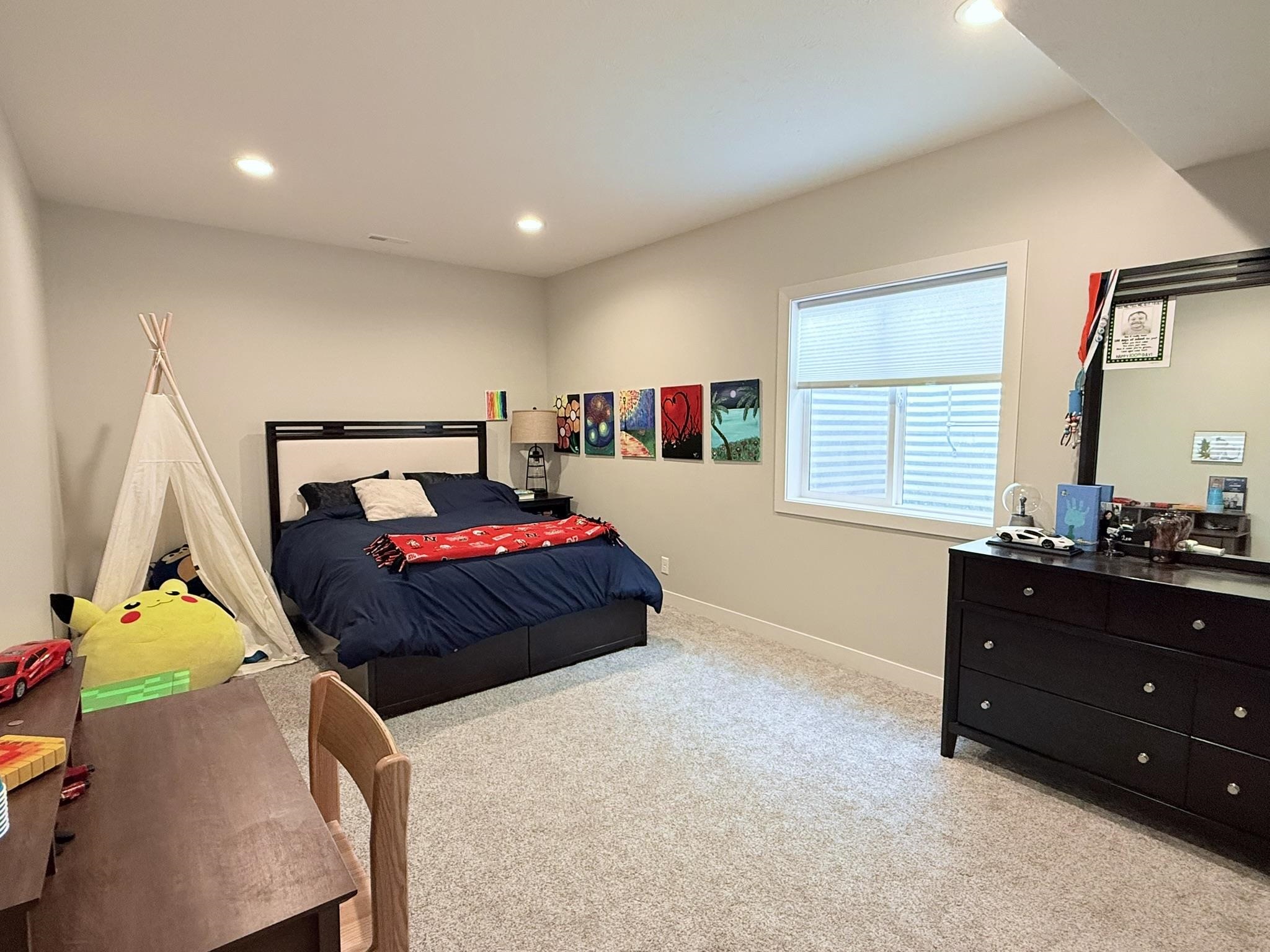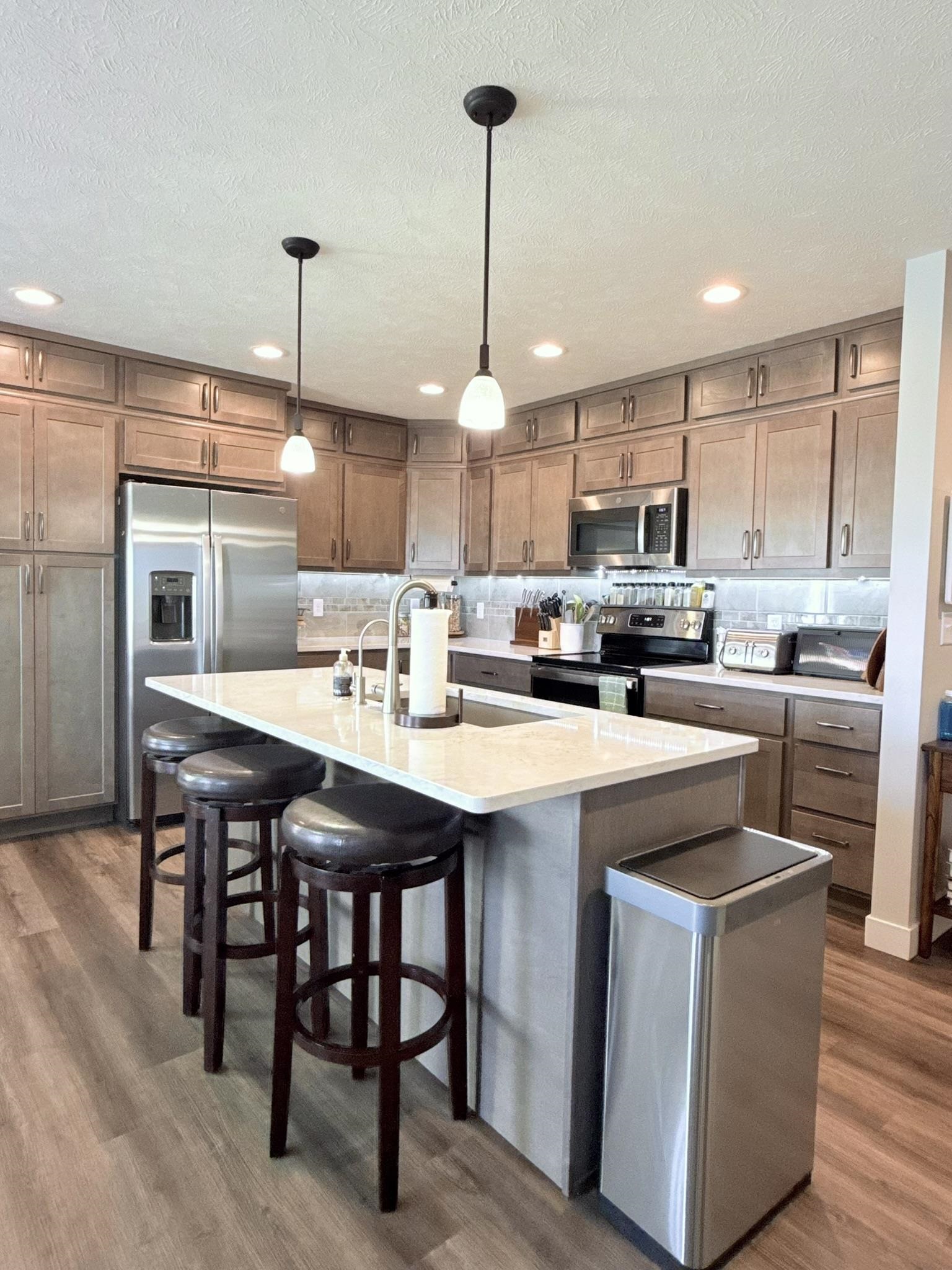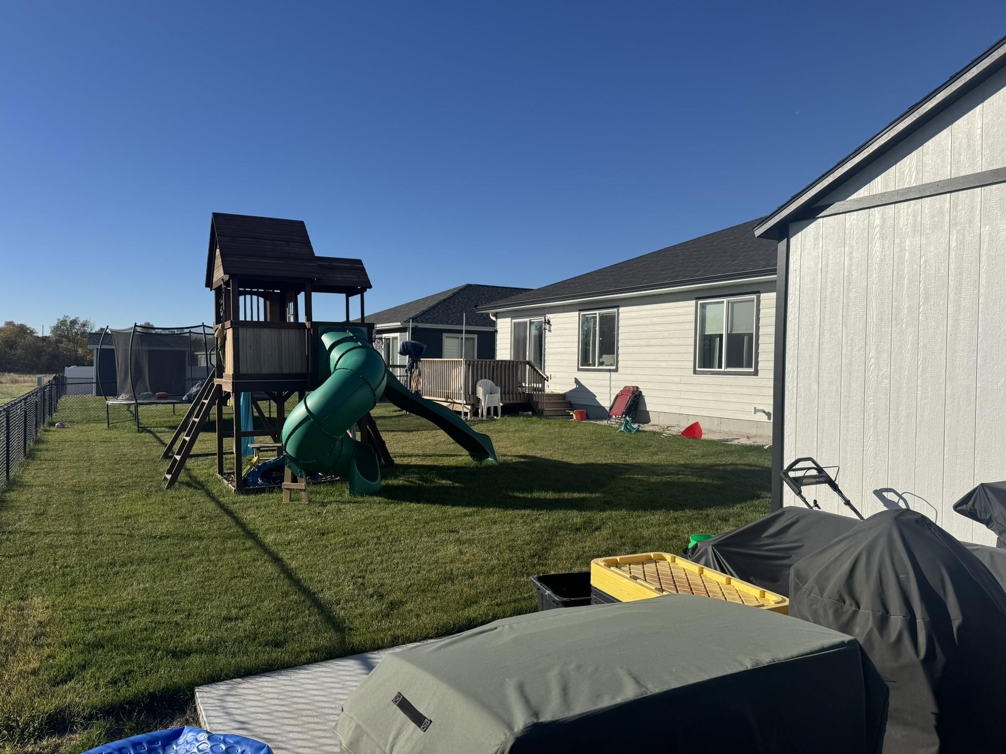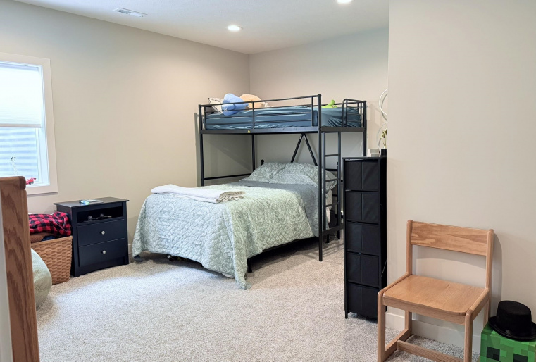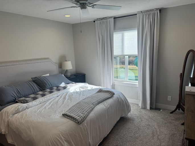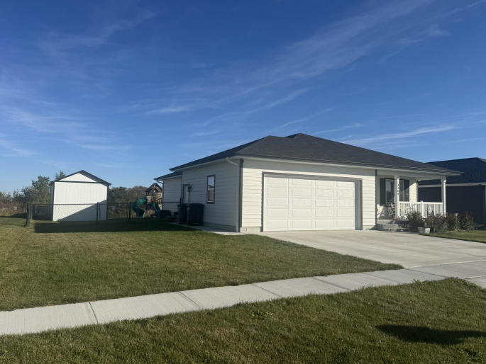 This pristine 2023-built residence showcases an expansive open-concept main level where the gourmet kitchen, dining, and living areas flow seamlessly. Perfect for entertaining or everyday living. The kitchen impresses with sleek cabinetry extended to the ceiling for abundant storage and a refined, custom look. Step out onto the spacious rear deck and soak in breathtaking sunrise views that elevate every morning. The main level also features a convenient laundry room, two well-appointed bedrooms, and two bathrooms. Downstairs, the fully finished basement boasts tall ceilings, plush carpeting, a large storage area, two additional conforming bedrooms, and a full bath. Ideal for guests, a home office, or whatever you needs might be. Outdoor living is a dream with a fully fenced backyard, a brand-new 20×12 shed for extra storage or hobbies, and a generous concrete patio perfect for grilling. The attached 2-car garage offers convenience and security, while vibrant Govee exterior lighting enhances curb appeal day or night. Meticulously maintained and loaded with upgrades, this move-in-ready gem combines contemporary style, functional layout, and outdoor enjoyment. Truly a rare find!