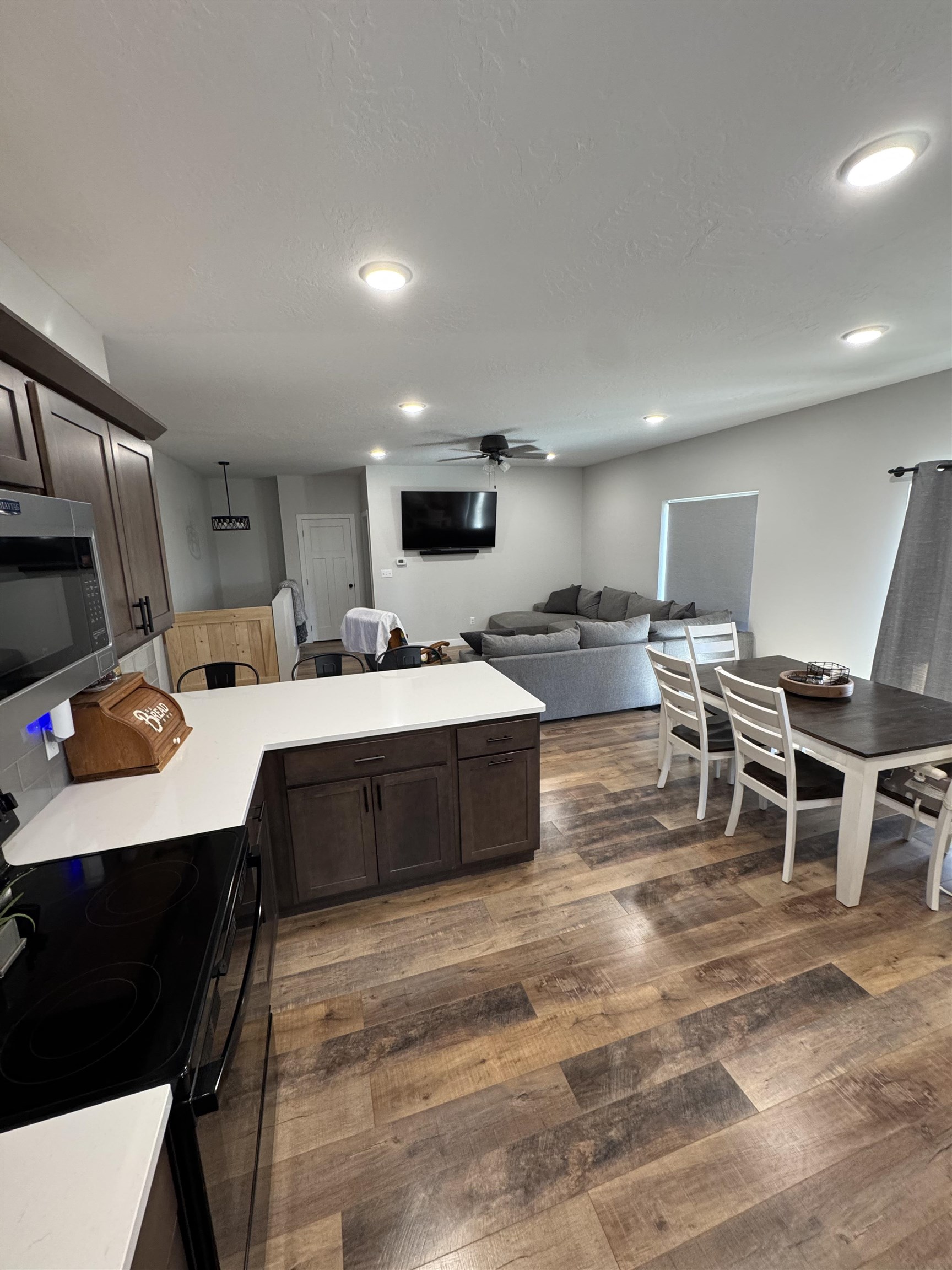: Electric Range, Dishwasher, Garbage Disposal, Microwave, Tile, Range Hood, Eat-in, Granite Countertop