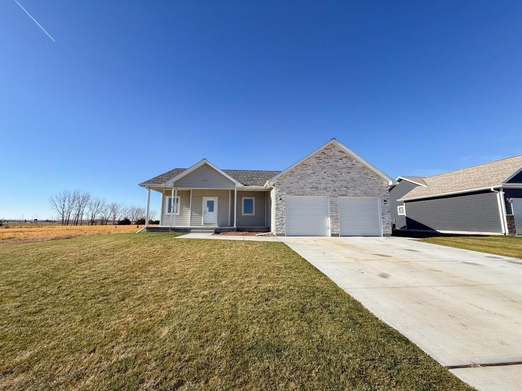 Step into modern comfort and style in this newer home. The main floor features a laundry room and a spacious primary en suite showcasing double onyx sinks and a huge walk-in closet. Two additional bedrooms and a full bathroom round out the main level. The unfinished basement provides incredible potential, already laid out for a future 21′ x 28′ family room, two more bedrooms, a full bath, and ample utility/storage space. Quality craftsmanship continues outside with 8″ Smart Side siding, stone accents, Class 3 impact-resistant shingles, and energy-efficient Anderson 100 windows. This home blends durability, efficiency, and elegant design—don’t miss your chance to make it yours!