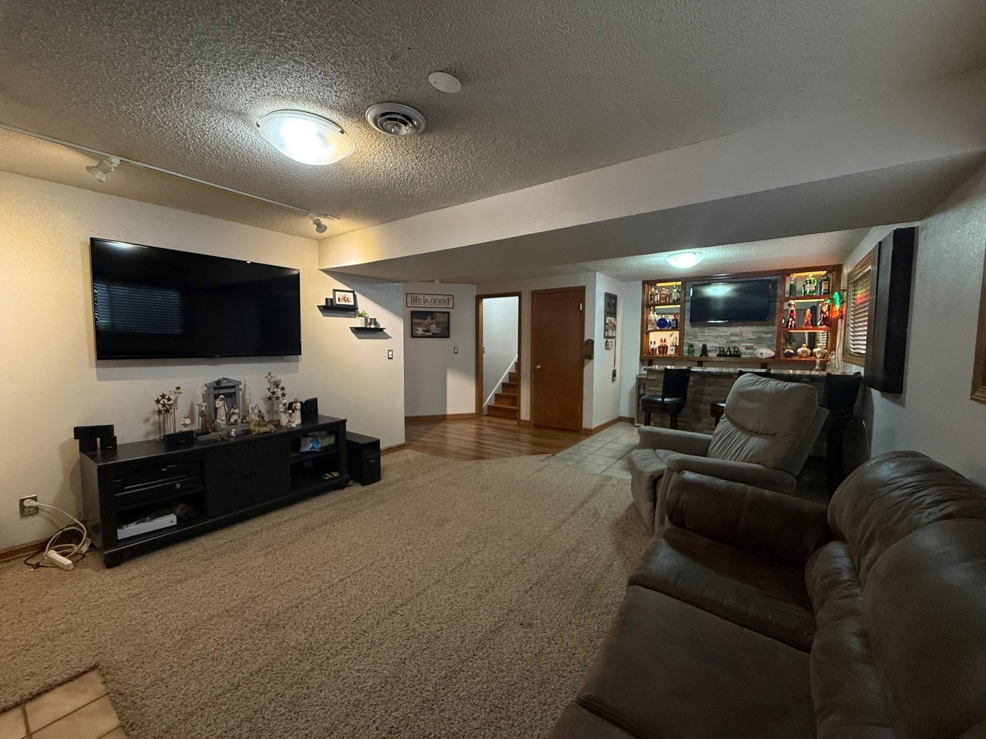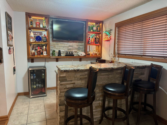 : Fireplace, Carpet, Bar, Tile