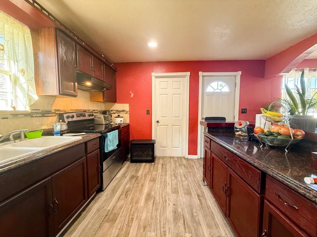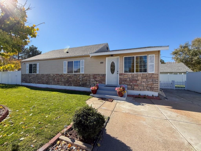 1.5 story home on a spacious corner lot with great curb appeal! This 5-bedroom 2- bathroom property features an open concept main level with a bright living room, large dining area and a kitchen with island and bar seating. Big windows, recessed lighting and tile/laminate keep the space light and modern. The primary bedroom has its own bathroom and walk-in closet. Additional bedrooms offer plenty of flexibility for family, guests a home office or hobby rooms. The outside offers a fully fenced yard with vinyl privacy fence. A move-in ready home, schedule your showing today!
