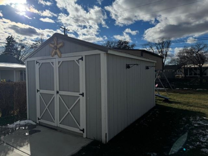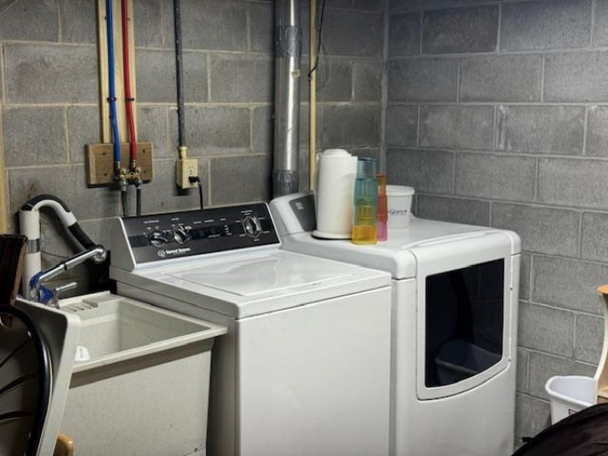 Charming home in great location. 3 BR, 2 Bath with lots of updates, newer flooring in kitchen with new classy appliances. Laundry area has washtub and basement has a workshop (take note men!) Large storage room and some shelving will stay. Fenced in backyard accept for small area. Spacious new wooden storage shed and covered porch on the front. Hardwoods under most of the carpet upstairs. (not sure of condition). Newer block basement with egress window done by M&S construction (7-10 years ago) and new concrete driveway. Upright freezer in basement will stay. The washer and dryer are negotiable. (Washtub will be plumbed in.) Newer roof, gutters and siding and new windows on the main level. Perfect starter home for someone or great home for anyone. Well maintained.