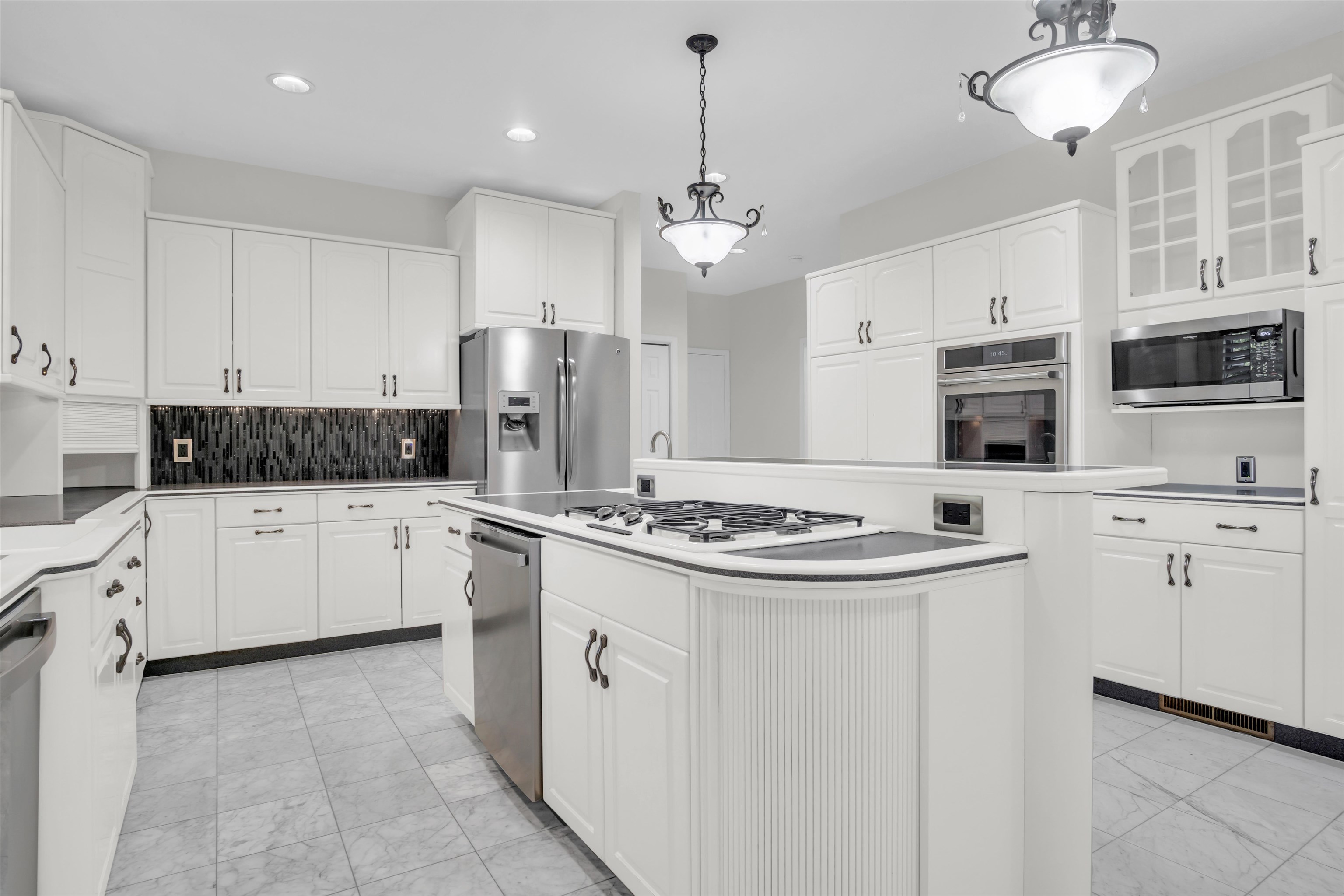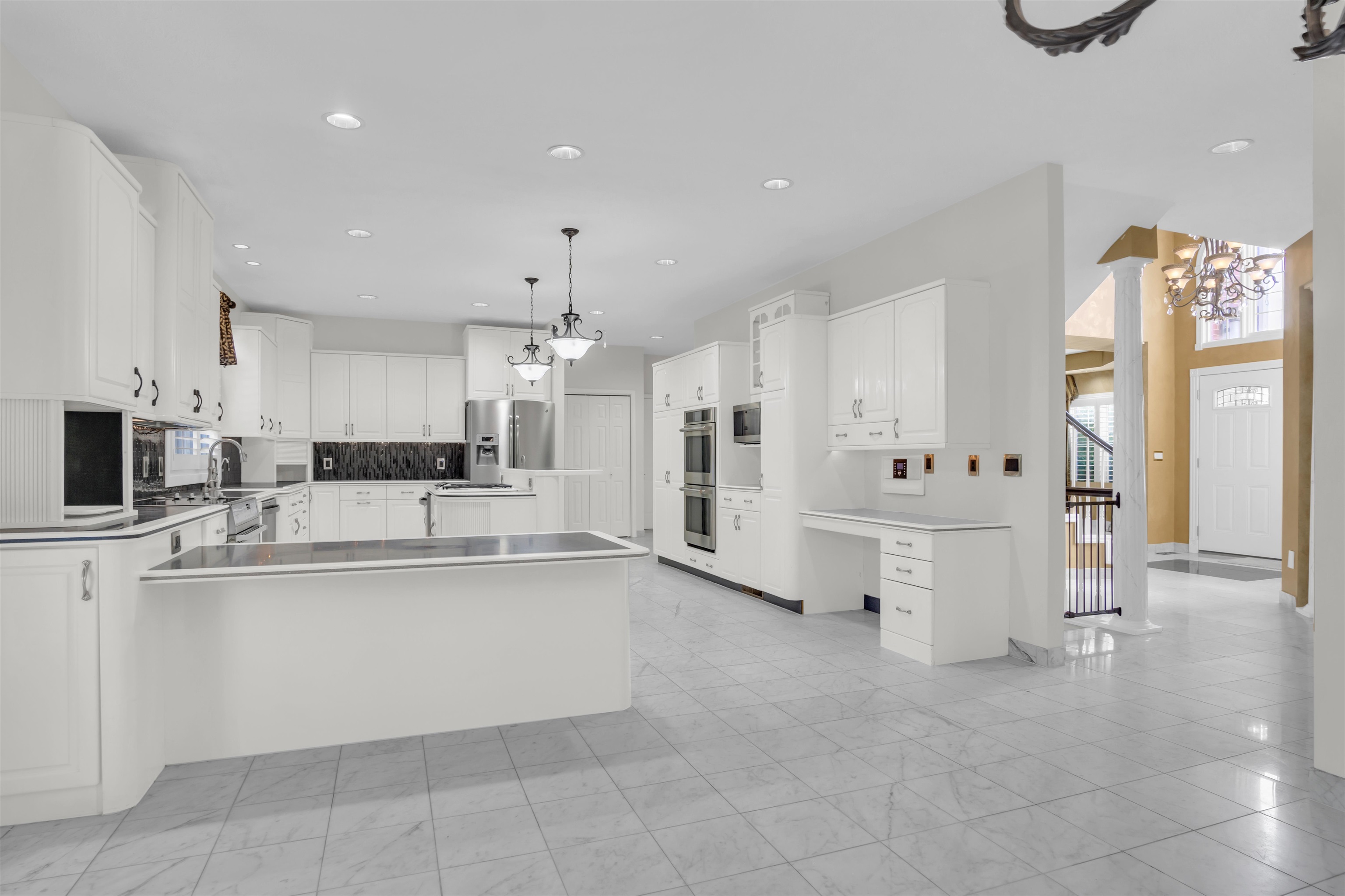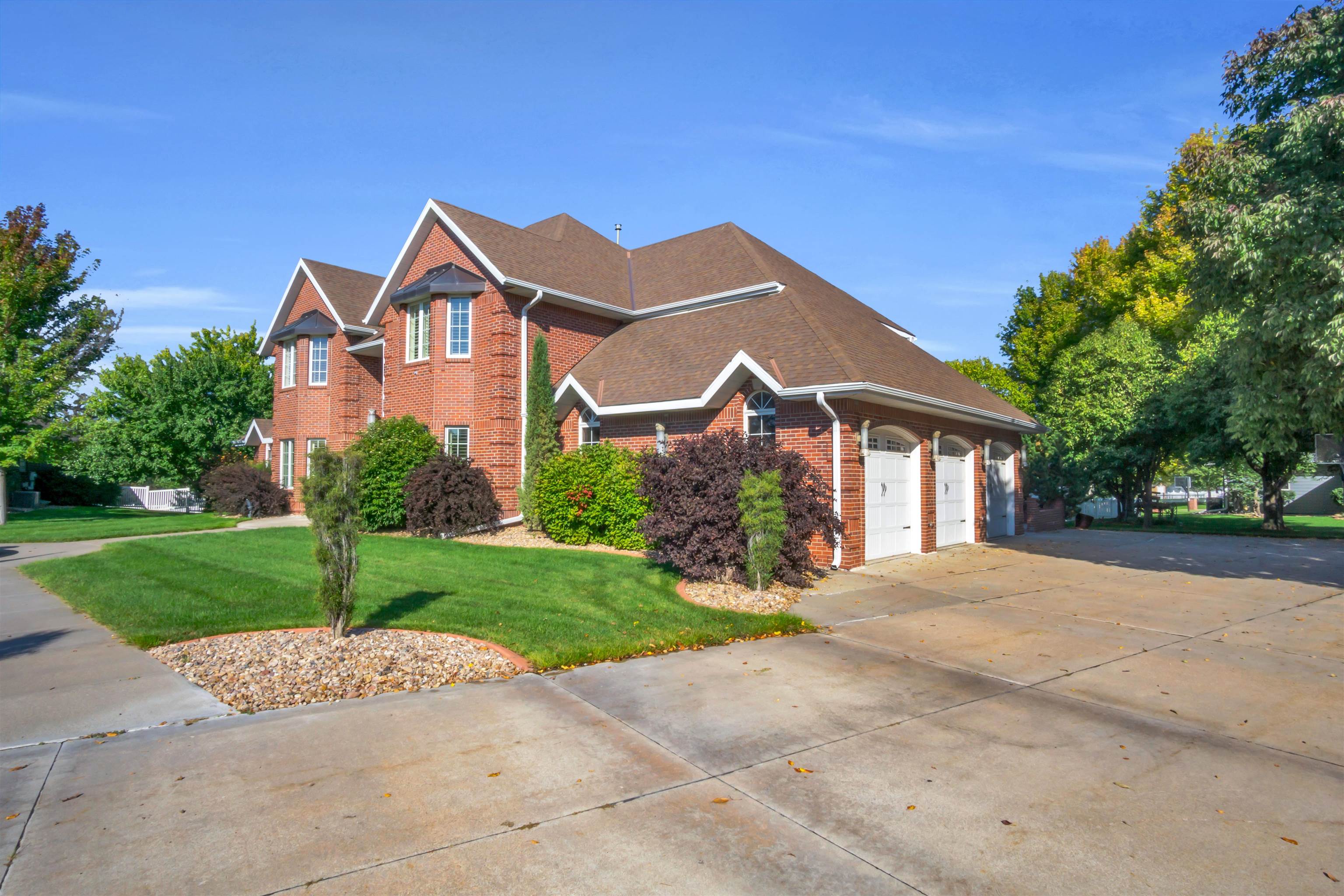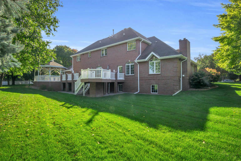 This one-owner custom-built brick home is situated in a great location at the end of a cul-de-sac. Built in 1993, it offers three heated car garages and spans an impressive 6,072 square feet of living space. Upon entry, a grand foyer with double doors and an elegant staircase greets you. The home includes four conforming bedrooms, each with a walk-in closet and en-suite bathrooms, a formal dining room, a spacious great room, and a large living area with a gas fireplace. The expansive kitchen is perfect for culinary enthusiasts, offering generous counter space, Corian countertops, and stainless steel appliances, including three ovens, gas and electric cooktops, a refrigerator, and two dishwashers. The basement features a sizable family room (39′ x 15′), a wet bar, a bonus/study room, two non-conforming bedrooms, one bathroom, and ample storage. Additional highlights include a reverse-osmosis water system, a water softener, a sump pump, an intercom system, a built-in vacuum, three water heaters, custom window treatments, two air conditioning units, and two heating units—one serving the second floor and the other serving the main floor and basement. Enjoy peaceful evenings on the lovely gazebo and the spacious composite deck. The luscious landscaping captivates the senses with its remarkable curb appeal, mature trees, and meticulously designed elements that leave a lasting impression. All room measurements are approximate.