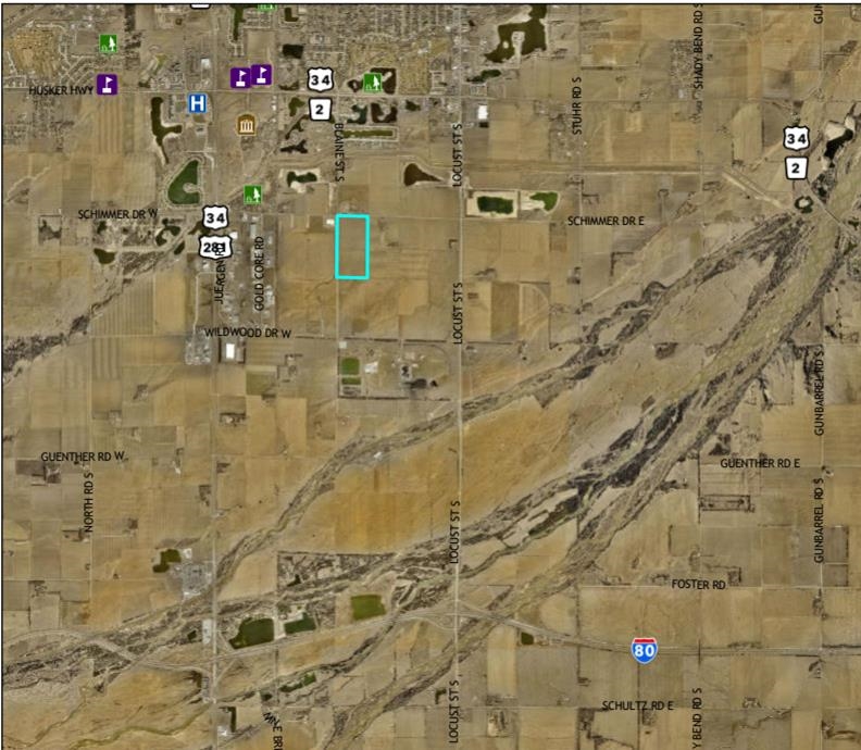 Exceptional opportunity to acquire 78± acres of quality agricultural land with strong commercial and industrial development potential, located on the southeast edge of Grand Island. The property lies east of the Industrial Park, positioned between Highway 281 and Locust Street, and offers excellent access to Interstate 80. This tract features paved road frontage on two sides, providing outstanding accessibility and visibility. City water and electric services are available to the property, making it well-suited for future development while continuing to offer productive agricultural use. The land lays flat and is comprised primarily of Lamo silt loam and Caruso loam soils. An irrigation well, drilled in 2002, is located on the property, supporting continued agricultural operations. With its strategic location near existing industrial development, major transportation corridors, and municipal utilities, this property presents an excellent opportunity for investors, developers, or operators seeking a prime expansion site in one of Grand Island’s most promising growth areas.