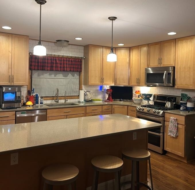 Spacious Brick Ranch with Income Potential on Large Lot Welcome home to this expansive brick ranch situated on a generous 100 x 140 lot, offering space, versatility, and endless possibilities. Featuring 5 bedrooms plus a very large bonus room with hookups for a potential 2nd kitchen, this home could easily be converted into a rent-producing duplex or accommodate multi-generational living. The kitchen includes all appliances and an convenient pantry. Enjoy warm gatherings in the inviting living room with a double wood-burning fireplace that opens to the family room just off the kitchen. Beautiful engineered hardwood flooring flows throughout the kitchen, dining, living, and family rooms, as well as the suite bedroom with a ½ bath and a second handicap-accessible en suite bedroom with a ¾ bath. Additional highlights include a 2-car attached garage and a sprinkler system to keep the yard looking its best. This rare find offers space, flexibility, and investment potential…don’t miss the opportunity to make it yours!