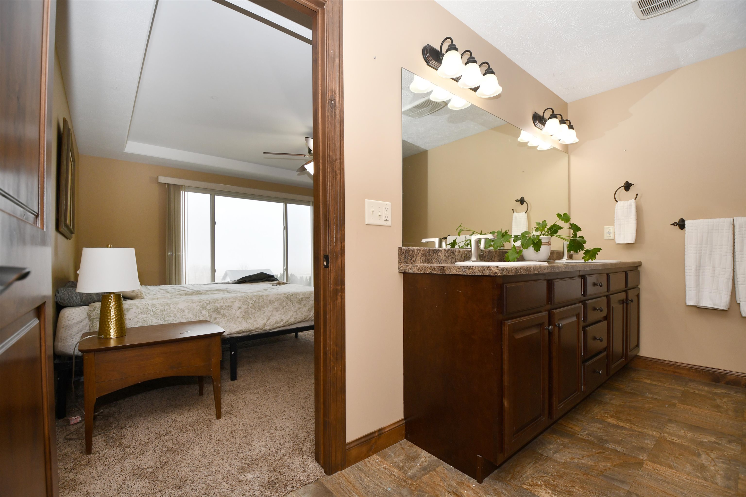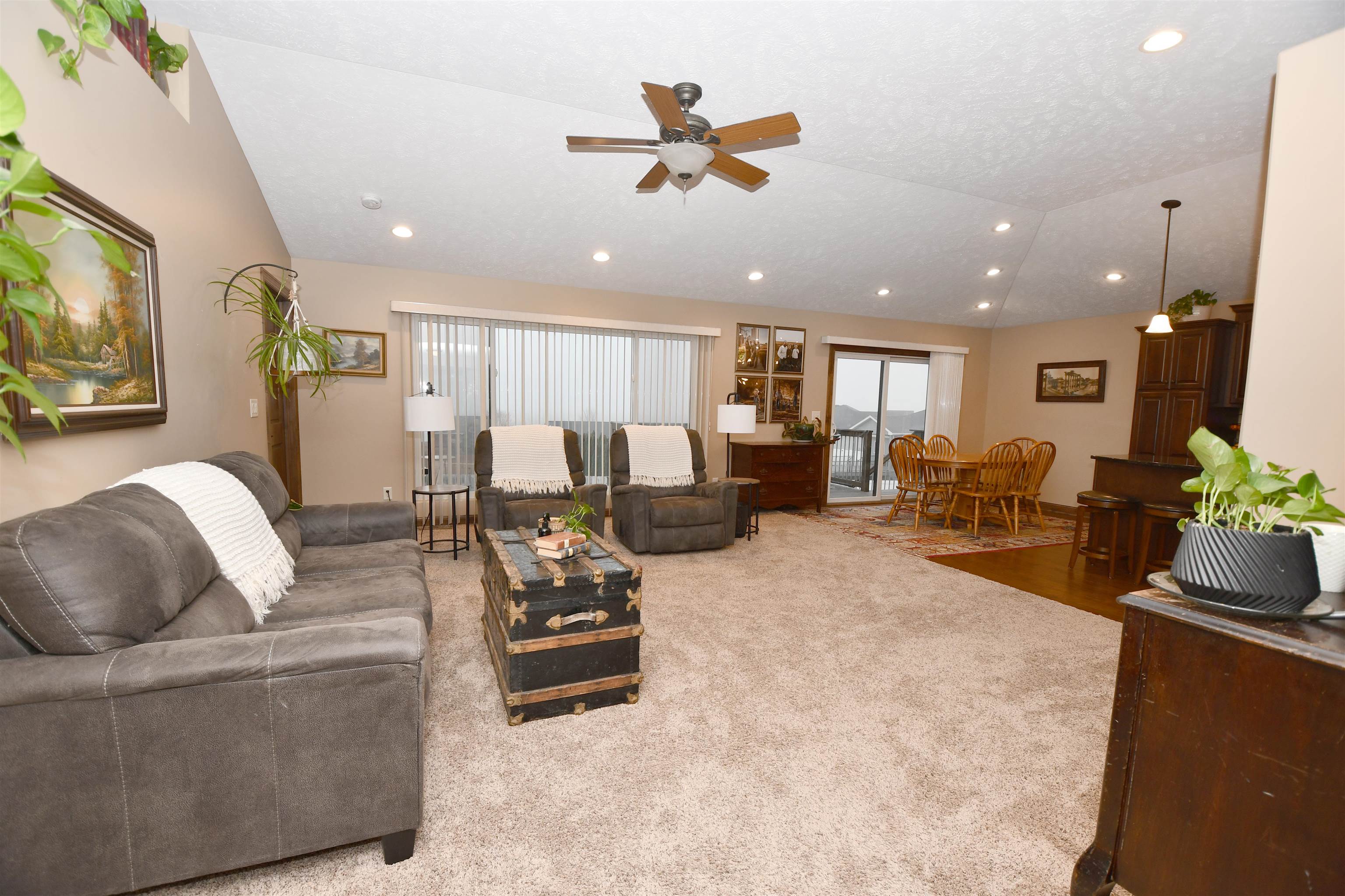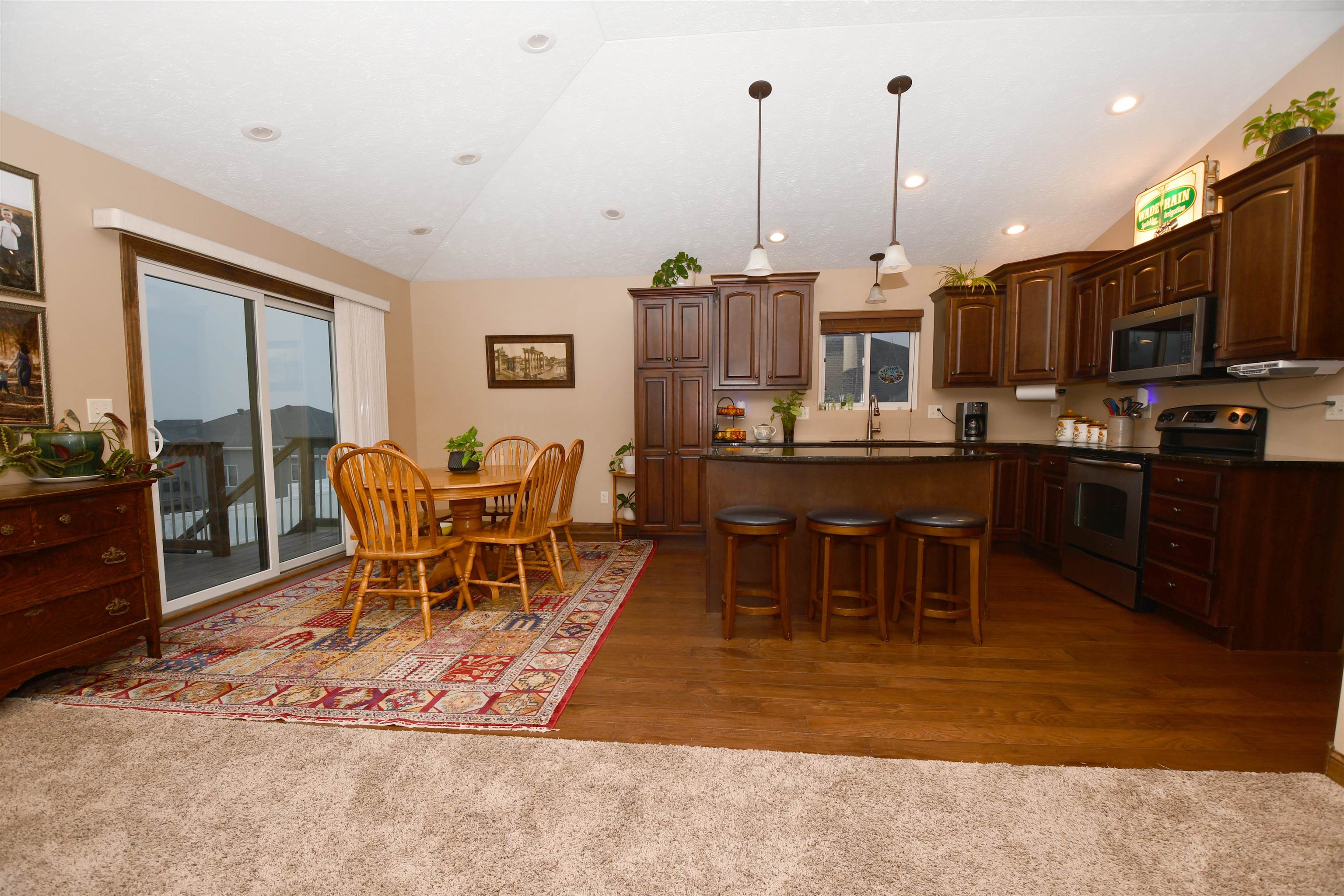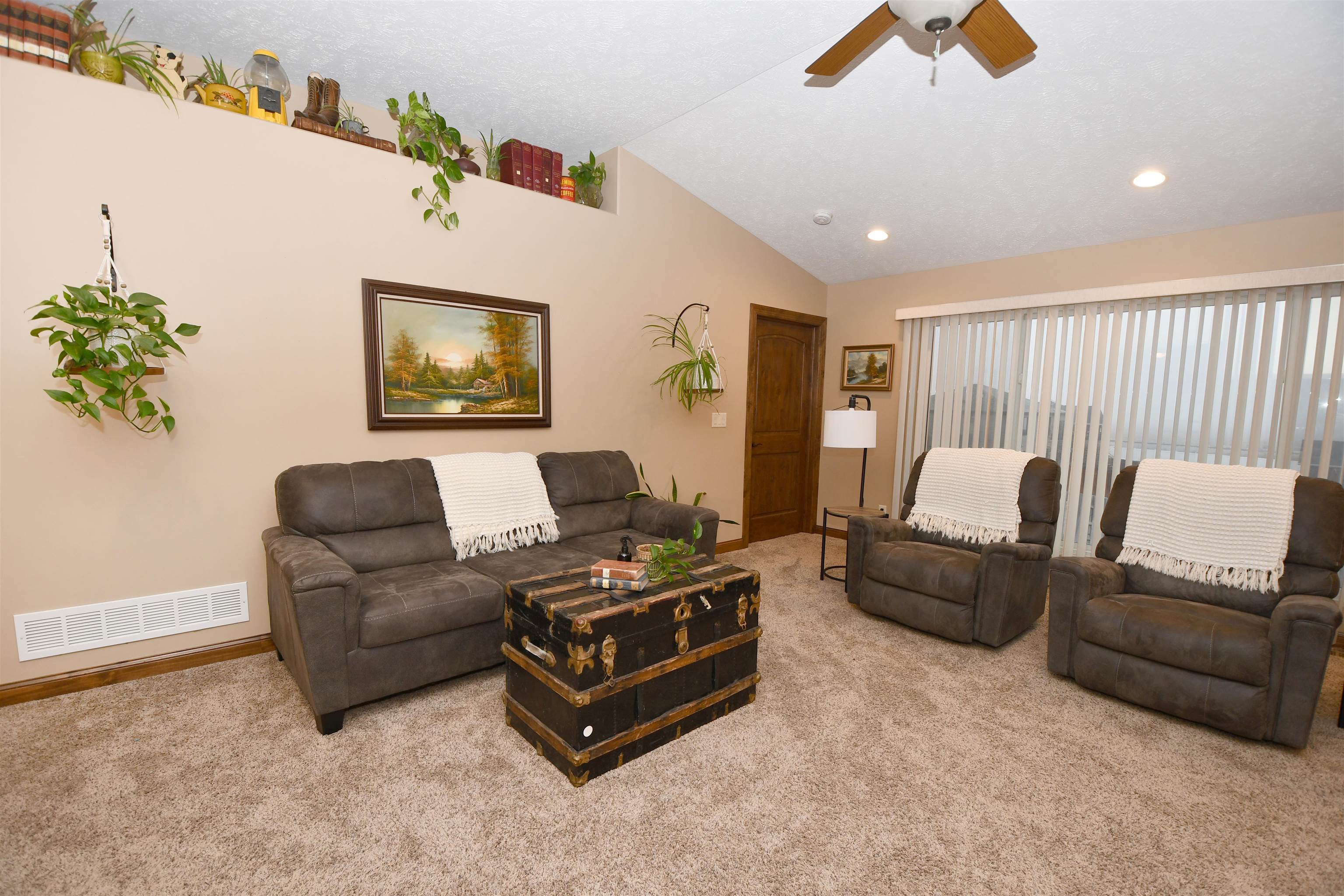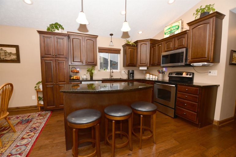 Beautiful home located in Northeast Kearney with zero step entry through garage and front door. Main floor features an entry way with wood floors and a coat closet, plus laundry room and the door to the attached 3 car garage. The living room has a large window and lots of natural light. Kitchen has a moveable island and granite counter tops. The dining room has a sliding door out to the deck with stairs to the fenced in backyard. Down the hall from the kitchen is a nice sized pantry plus a full guest bathroom. There are also two guest bedrooms at the end of the hall. The primary bedroom is off the living room and is quite large! There is a huge window and a walk in closet off of the bathroom which features a shower and double sink vanity. Downstairs are two good sized bedrooms both with egress window a guest bathroom with tub shower. The basement living room is bright and has a door to the downstairs patio outside. This would be a great place to call home!! Set up your appointment to view today! Room sizes are approximate and square footage according to courthouse records.
