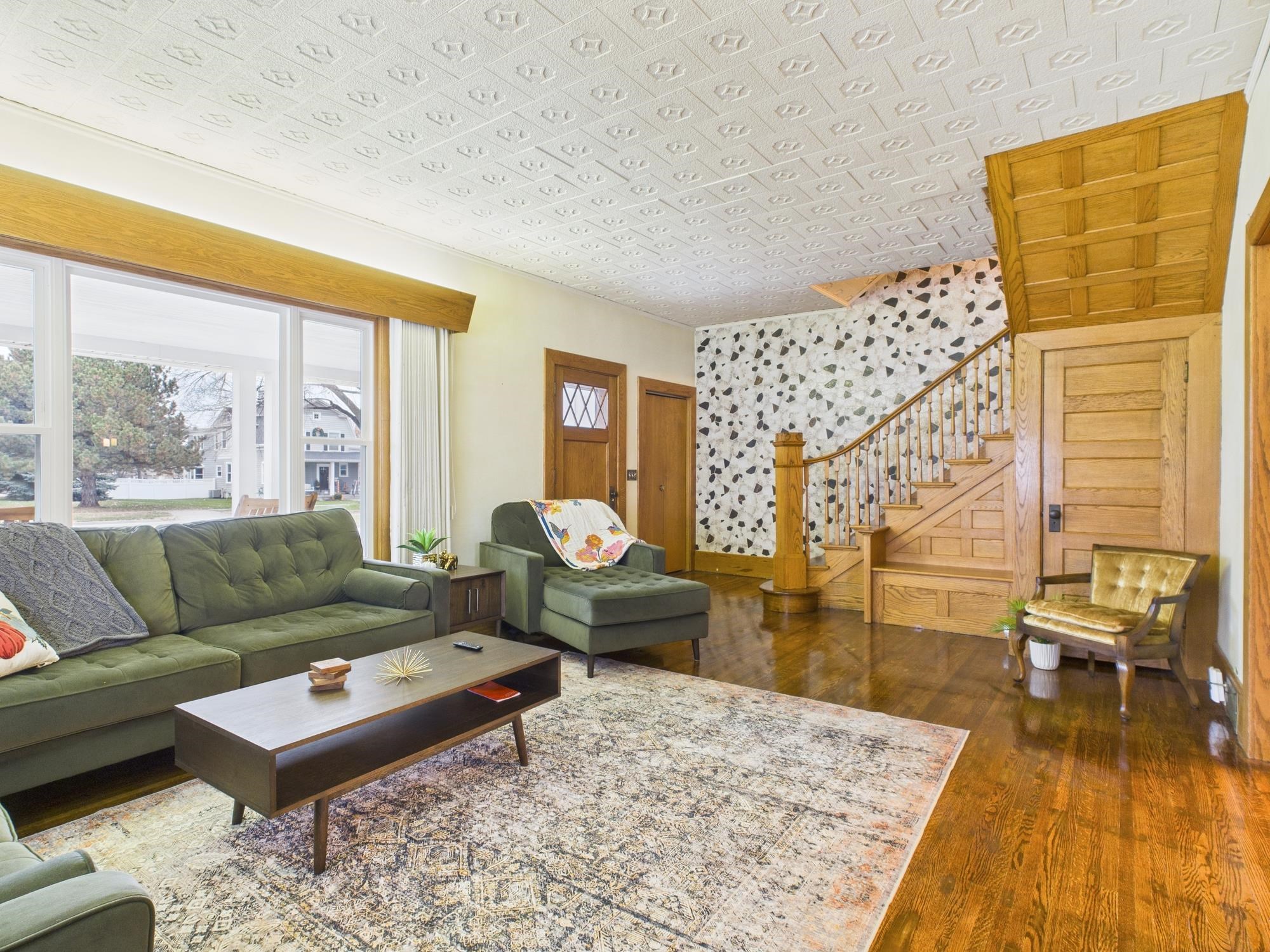 This home has seen a few renovations throughout. Stunning hardwood floors shine on both the main floor and upstairs. The upper-level features four bedrooms and an updated bathroom. A rare 3+ car attached garage offers plenty of space for vehicles, tools, and toys. Major updates include new siding and a new roof. Enjoy summer evenings on the wraparound front porch, which also provides a front-row seat to local parades. Call today to schedule your private showing!