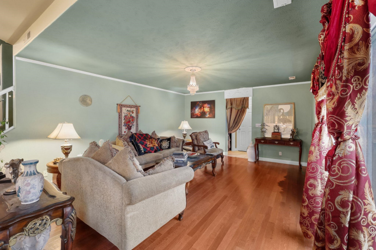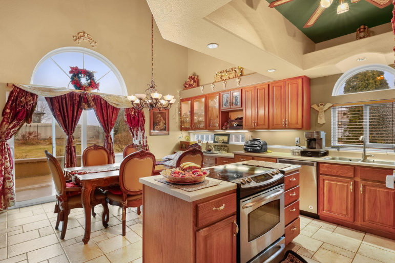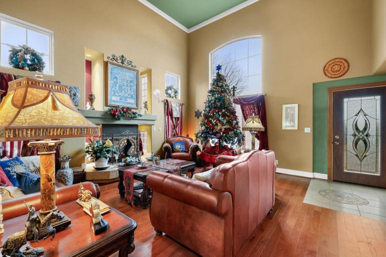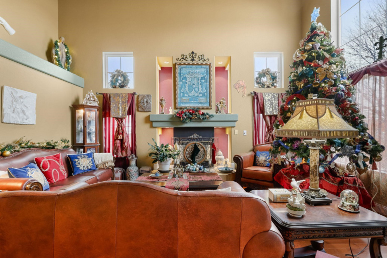 Unique beautiful custom built stucco home with 3 Bedrooms, 2.5 Baths with lots of style. Eat in kitchen/dining combo with lots of cabinets and shelving for displays. Tall ceilings. Lighted shelter space with trap door in garage (located by inside door to garage. Extra large hot water heater. Spacious fenced backyard with lots of trees, bushes and over 200 plants & flowers including hydrangeas, magnolia bushes, variety of colored roses, hibiscus, lilacs, and snow white plants. Lots of updates, including new Pella windows throughout, new Italian thermo tile roof, gutters, new stucco and paint on outside within last year. Also new hot water heater and water softener. The living room is new wood floors with door entry Mediterranean tile. New garage doors within last 6 months. Spacious 3 car garage with 2 extra refrigerators that will stay. All new front doors, back doors, and garage doors. Metal fencing with brick pillars around spacious back yard 3-4 years ago. Wood and Italian tile floor recently redone in living room with gas fireplace. Sunken floor family room. Bedrooms on upper level which gives beautiful view of sunrises and sunsets on many occasions. (Outdoor patio could be enclosed to be used as a sunroom if desired) Well maintained home with underground sprinklers on spacious corner lot. Decorated for the holidays. There is a custom window treatment for the half bay window when the wreath is down- it is taupe colored. Statue in corner of backyard will stay but fossils will not stay. Laundry on main level with 1/2 bath close to laundry room. Washer and dryer will stay and can be regulated via Samsung mobile app feature as well. Half bath has new toilet and sink/vanity. New custom lights available for brick pillars to showcase property. Close to emergency snow route as well as retail and medical facilities. Special property to see.