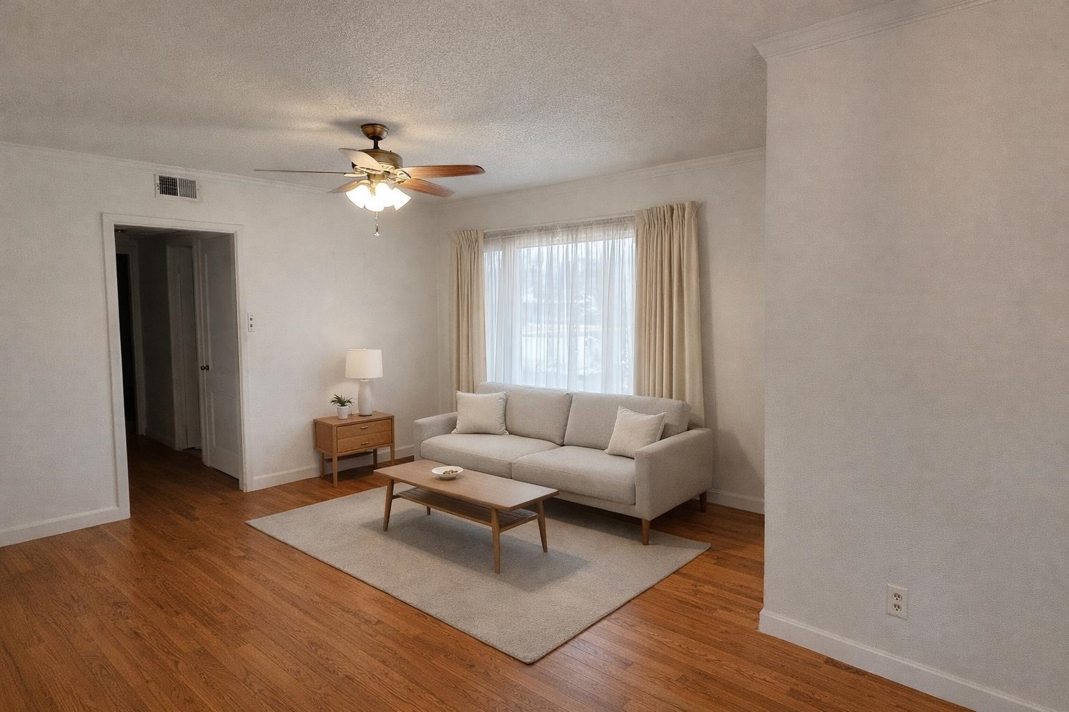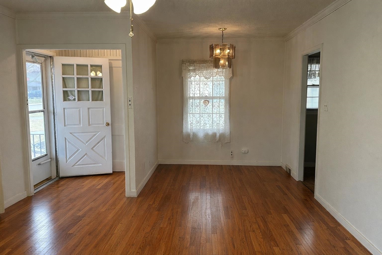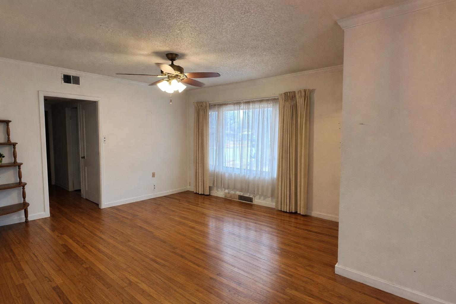 Solid investment opportunity with strong upside! This efficient, all-on-one-level property features 2 bedrooms and 1 bath with a combined living and dining area. The kitchen connects to a laundry/utility room. This home is ready for your updates and finishing touches, making it an ideal value-add project. Situated on a corner lot with a fenced backyard, this property includes a one-car detached garage and a storage shed. Convenient location near the high school, middle school, and North Park. Call today for a showing.