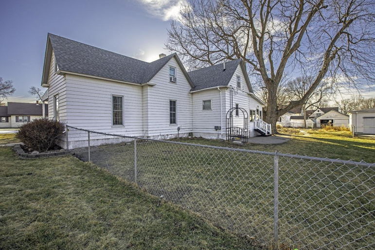 Charming 1.5-story home situated on a desirable corner lot, offering character, functionality, and outdoor space. The property features a 3-car detached garage complete with a loft area—ideal for storage, hobbies, space you could finish or a workshop. Enjoy the partially fenced yard with a patio area, complemented by established trees and bushes that provide shade and curb appeal. Inside, the main level offers a comfortable living room, dining room, and kitchen, along with a bedroom, full bathroom, laundry room, sunroom, and additional storage space. Upstairs, you’ll find 2 open concept bedrooms and a cozy seating area, perfect for a reading nook, office space, or flex area. The unfinished basement houses the utilities and provides ample room for storage. The home has a new furnace! This home offers a great combination of indoor and outdoor living with plenty of potential to make it your own. This home is a must see!