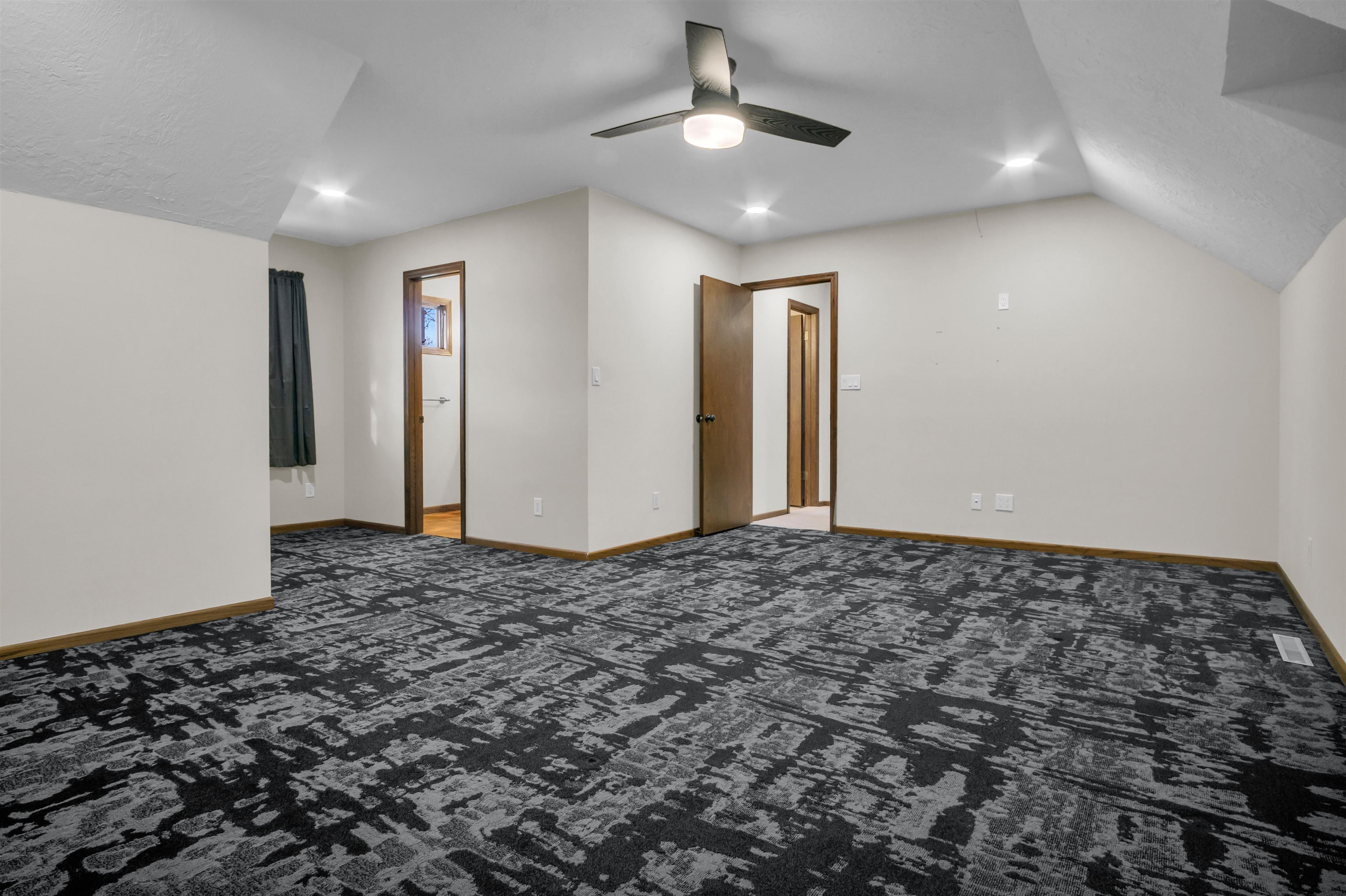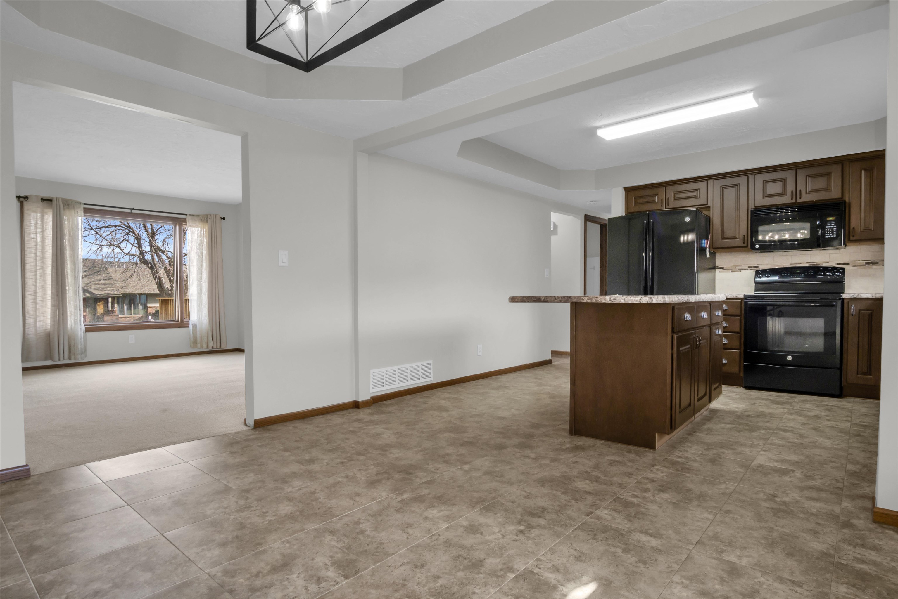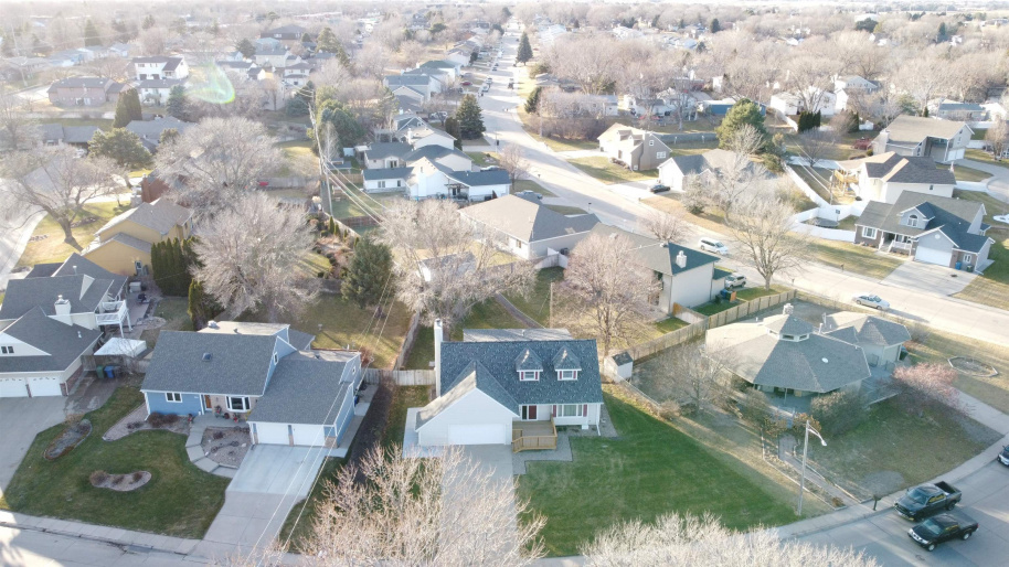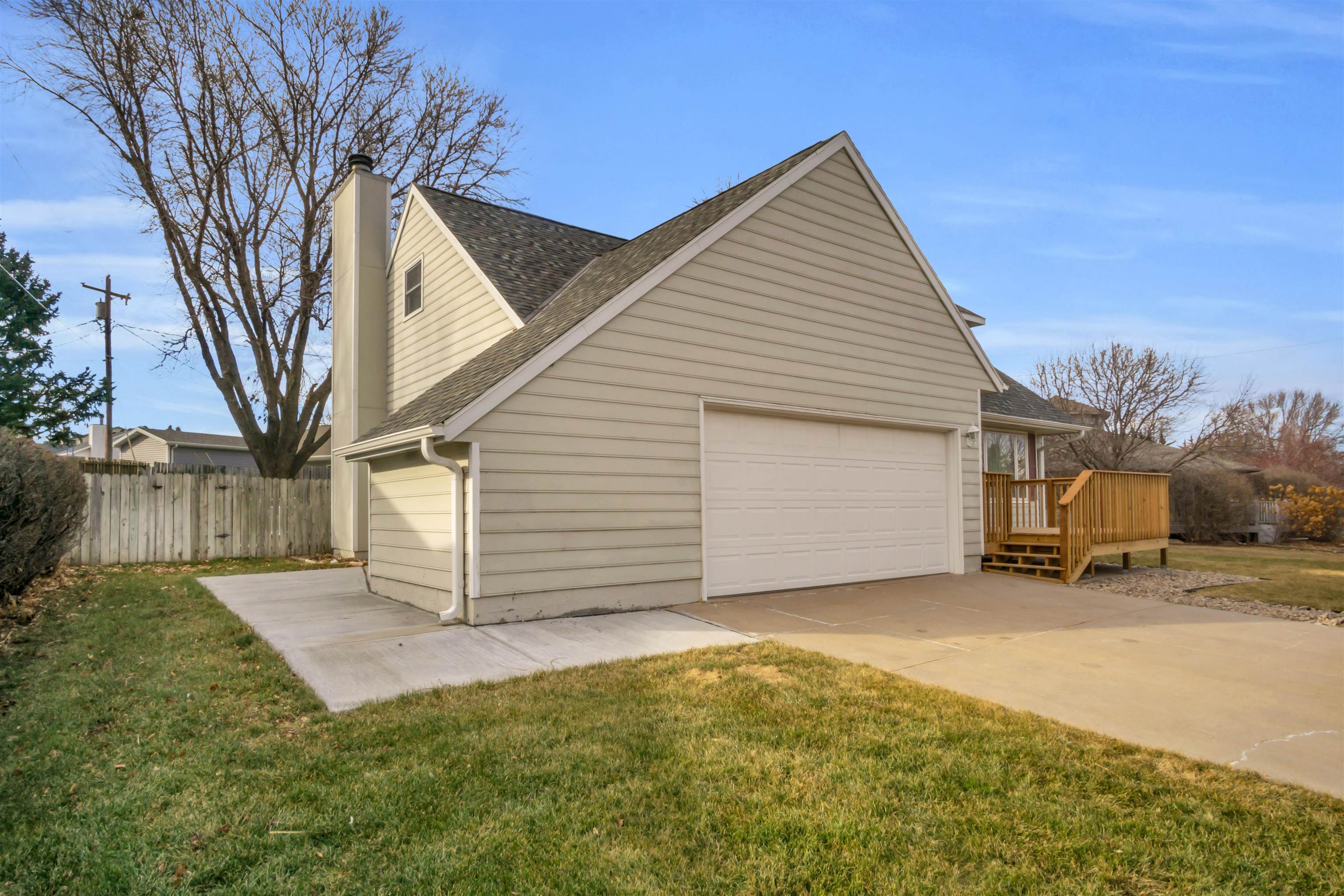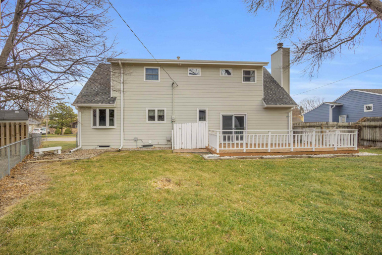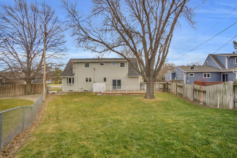 Tucked away Northwest of Kearney, this move-in-ready gem is steps from Fountain Hills Park, the hike-and-bike trail, and all the goodies Kearney offers. Step inside to a roomy living room with a grand bay window, a handy 1/2 bathroom, a laundry room, and a snug family room complete with a fireplace. Slide open the door to reveal a large deck and a fenced backyard ready for fun. The kitchen awaits your culinary masterpieces, boasting an island and oodles of counter space, and all appliances included. Upstairs, discover a versatile open area, a full bathroom, and three spacious bedrooms, including the primary suite with a walk-in closet and bathroom. The basement offers a bonus family room and a non-conforming bedroom—perfect for a toy room, gym, or office—plus plenty of storage. Bonus features include underground sprinklers, mature trees, a roomy two-car garage with a storage room, and an extra concrete pad. Dial up for your tour today! All measurements are approximate.