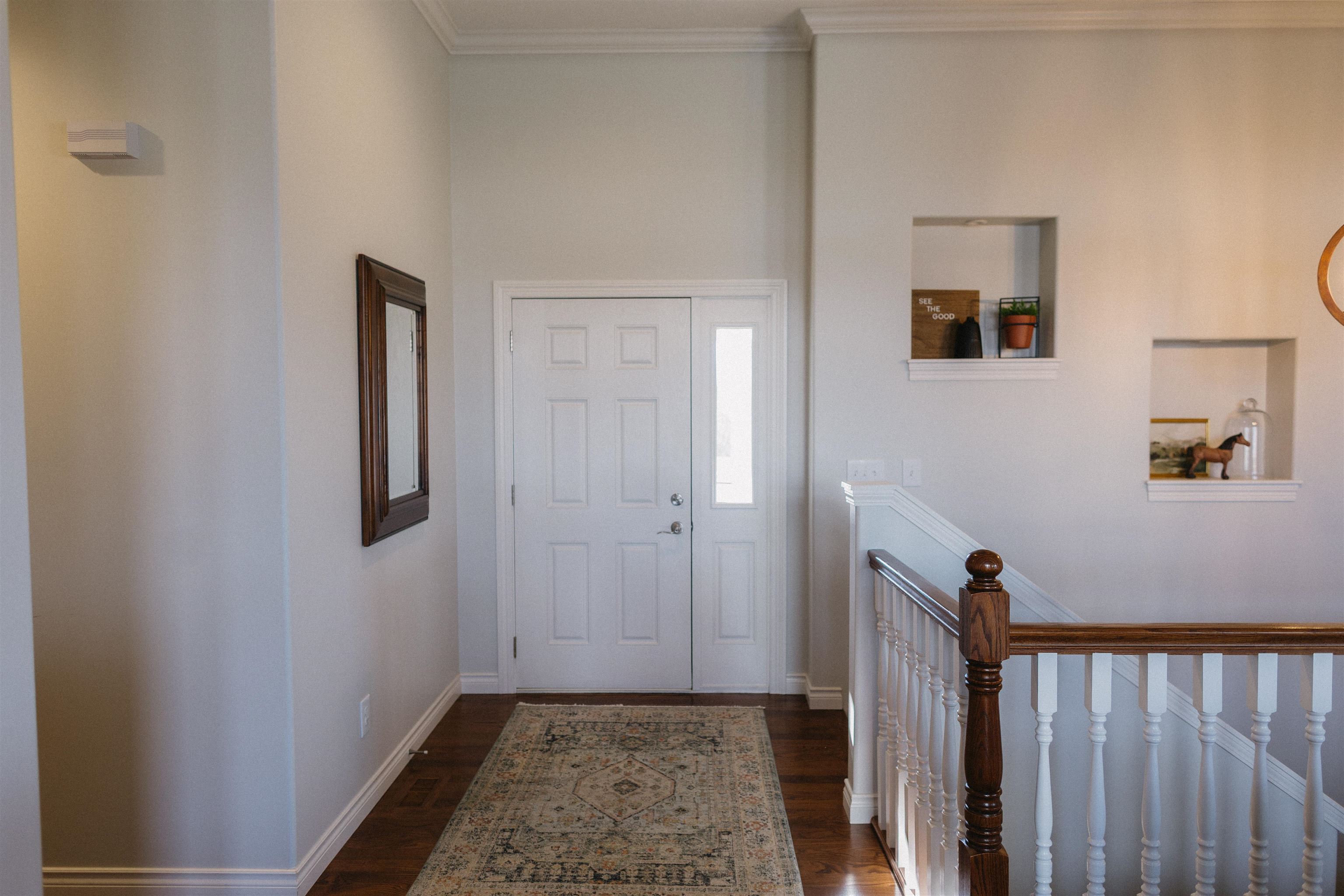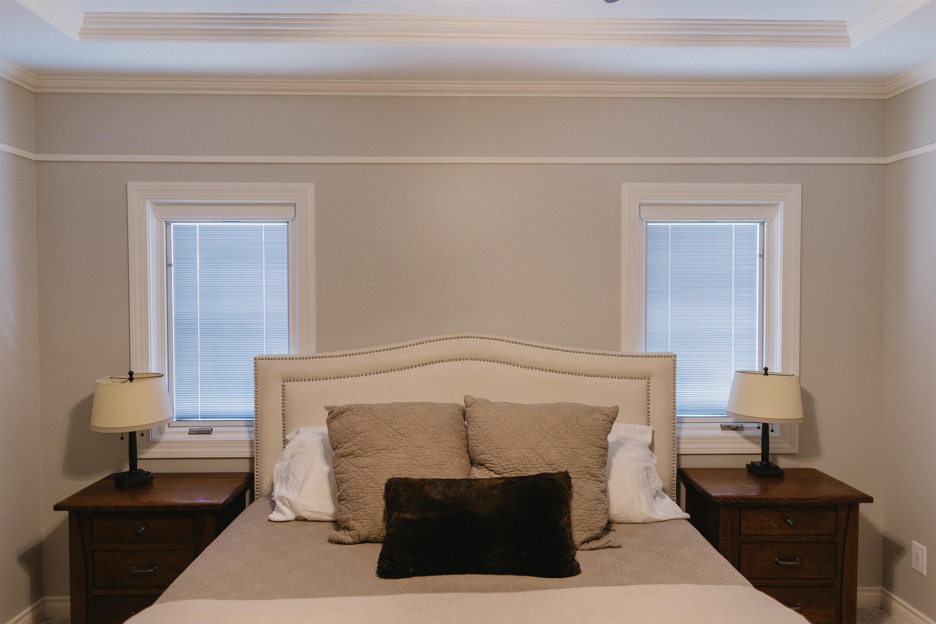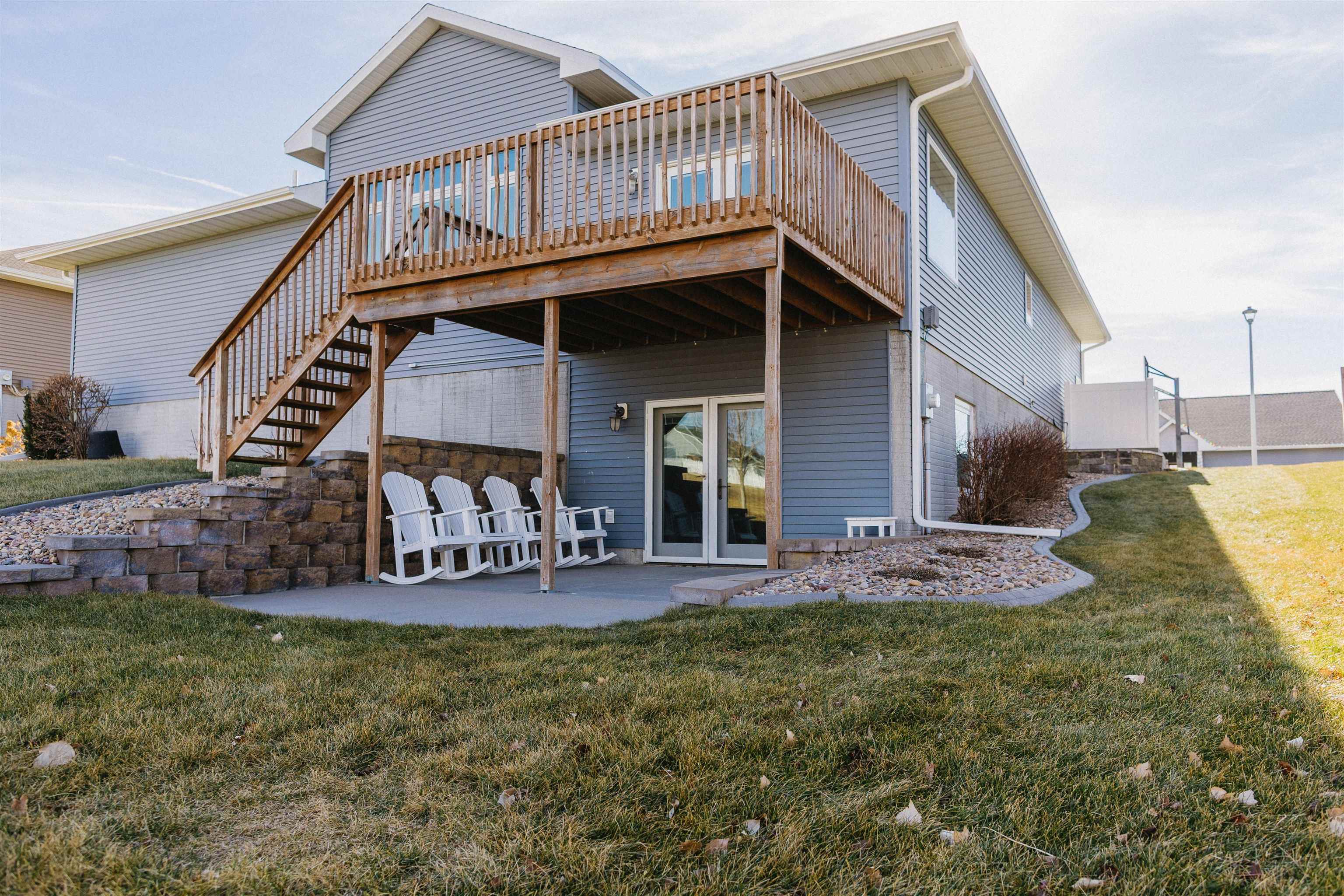 This five-bedroom, three-bath home offers a functional layout with three bedrooms and two bathrooms on the main level and two additional bedrooms with a bathroom in the basement. The main living area features vaulted ceilings with decorative wood beams and an open-concept design connecting the living, dining, and kitchen spaces. The kitchen and living areas were remodeled with quartz countertops, updated trim work, crown molding, and shiplap accents. Significant improvements have been completed over time, including Pella windows and doors with built-in shades throughout most of the home, updated lighting with added can lights, and updated kitchen appliances. The main level features new carpet installed in 2024. Exterior improvements include a new roof and new siding in 2024, a widened driveway with space for additional parking and a trash enclosure, and a detached shed providing additional storage. Outdoor living spaces include a deck off the main level and a walkout basement leading to a patio area. The yard is well established and includes underground sprinklers. There is also a storage shed in the backyard. A new air conditioner was installed in 2012. This beautiful home combines recent major updates with an open floor plan and indoor-outdoor living opportunities!