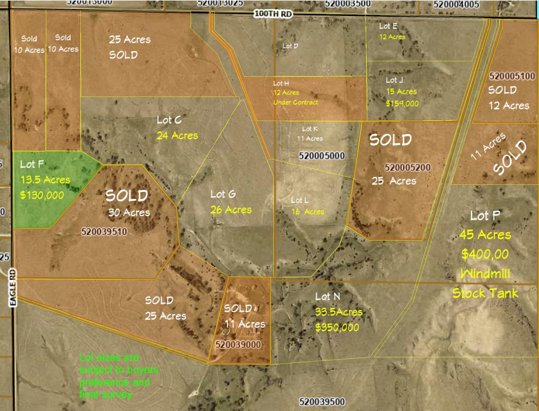 Lot locations can be selected and sized to buyers preference. Eagle Ridge is located Northwest of Kearney and provides buyers preference for parcel size with a 10 acre minimum size. within 15 minutes of Kearney. The rolling hills and deep valleys provide exceptional views and terrain that is suitable for walk out basement homes.Barndominiums and outbuildings are allowed. Lot F is located on the East side of Eagle Rd. and approximately 1/4 mile South of 100th Rd. The lot is approximately 13.5 acres of gentle rolling hills with road frontage. Lot is subject to final survey to be completed prior to closing. Seller can provide blueprints for new home construction to assist with securing construction loan financing. Buyer is responsible for driveway and electrical service to the lot. One of the sellers holds a real estate license in the state of Nebraska.
