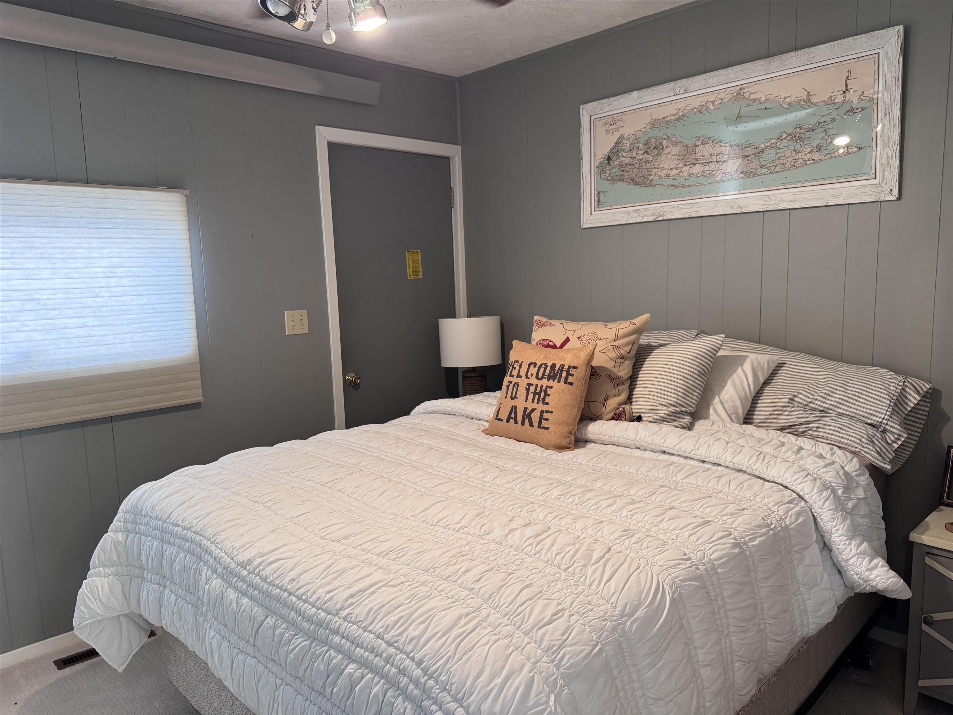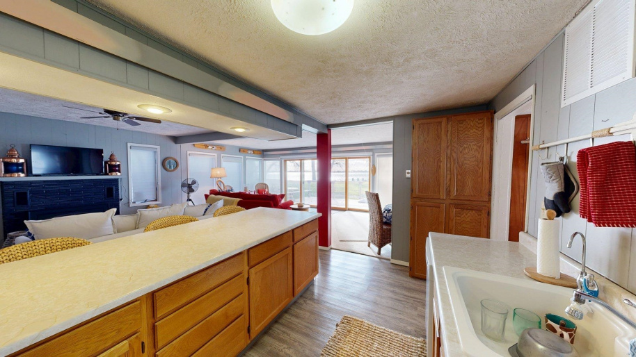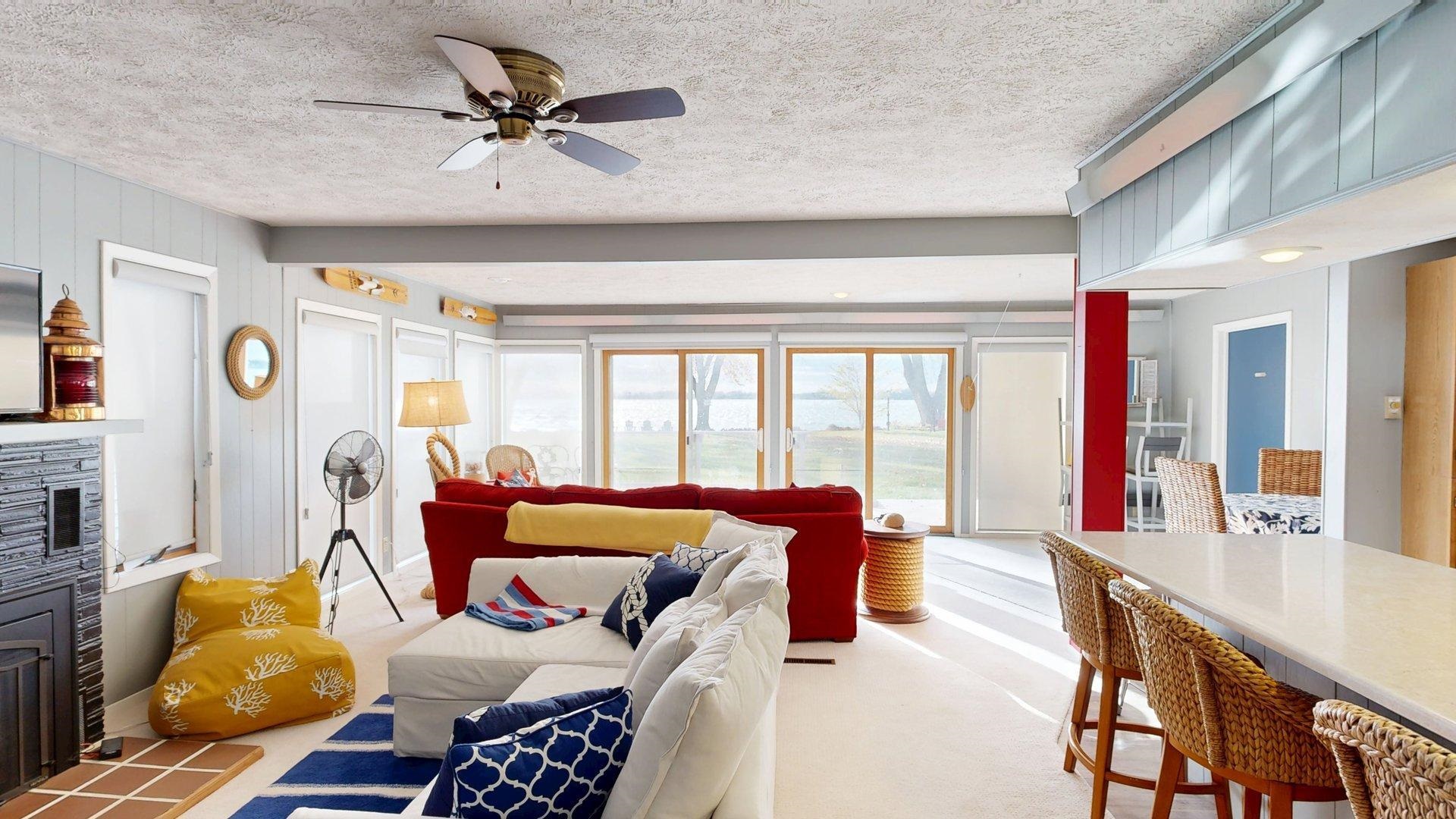 Enjoy lake life in this charming 2-bedroom, 1-bath cabin perfectly positioned at Johnson Lake. Inside, the open-concept living space features a cozy fireplace and a wall of lakeside windows with sliding doors that open directly to the deck, creating seamless indoor-to-outdoor living. The kitchen offers a large eat-in bar. Laundry is conveniently located in the bathroom for easy everyday living. Outside, you’ll appreciate the ground-level deck for relaxing and entertaining, underground sprinklers for easy lawn care, and a hard-to-find oversized lot that provides extra room to enjoy for entertaining or activities. The property also includes a two-stall detached garage. Behind the cabin, additional space offers convenient extra parking for guests, lake toys, or overflow vehicles. The property also includes a dock and ShoreStation for your boat as well as a jet ski. A rare opportunity to own a spacious lake property with room to grow, play, and make lasting memories at Johnson Lake.