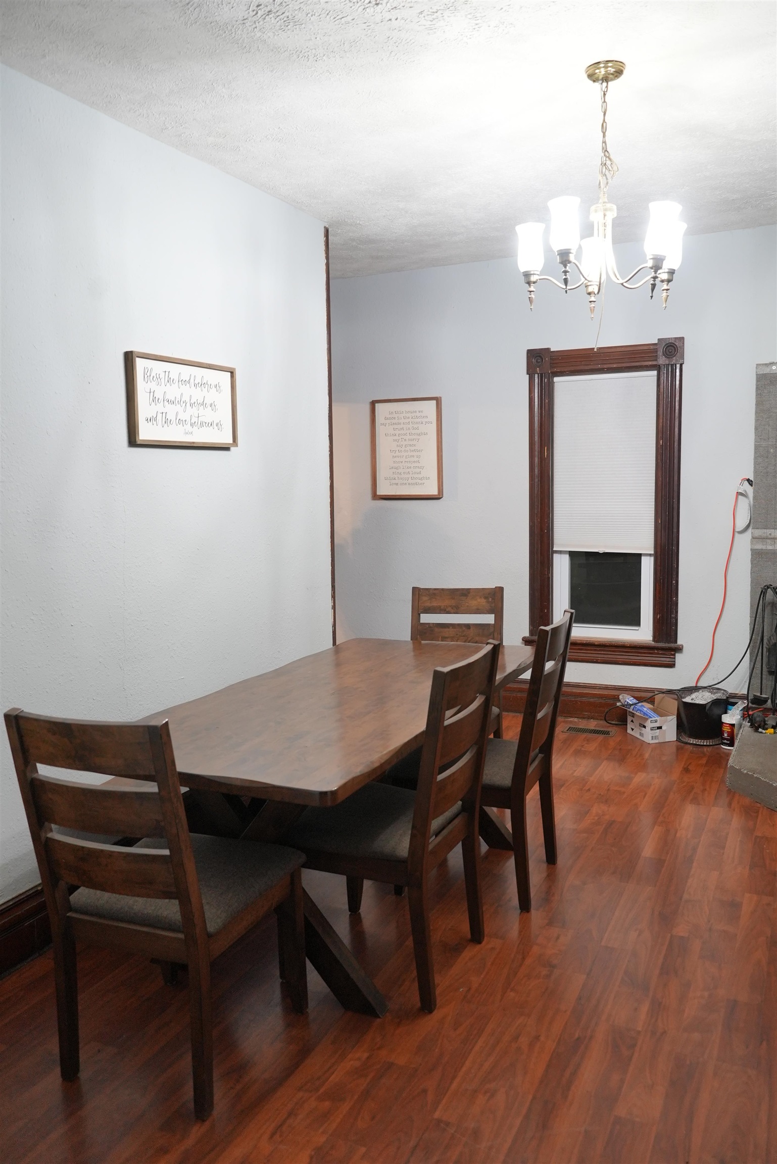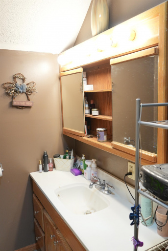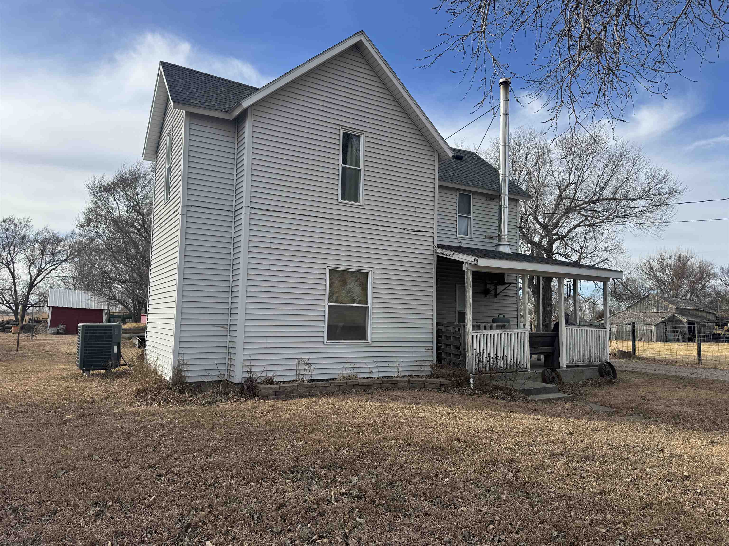 Welcome to this well-maintained 4-bedroom, 1.5-bath acreage offering space, comfort, and functionality both inside and out. The home features a practical layout with a mix of carpet, laminate, and tile flooring, along with a spacious living/dining combination and an eat-in kitchen equipped with electric range, dishwasher, microwave, refrigerator, and garbage disposal. Convenient main-level laundry adds everyday ease. Additional highlights include a sunroom and workshop space, perfect for hobbies, storage, or projects. The exterior offers low-maintenance vinyl siding, established landscaping, and a nicely maintained yard. Outbuildings include a detached garage and storage shed, providing plenty of room for vehicles, tools, or equipment. Located on a gravel road with peaceful surroundings, this property offers the charm of country living with room to spread out and enjoy.