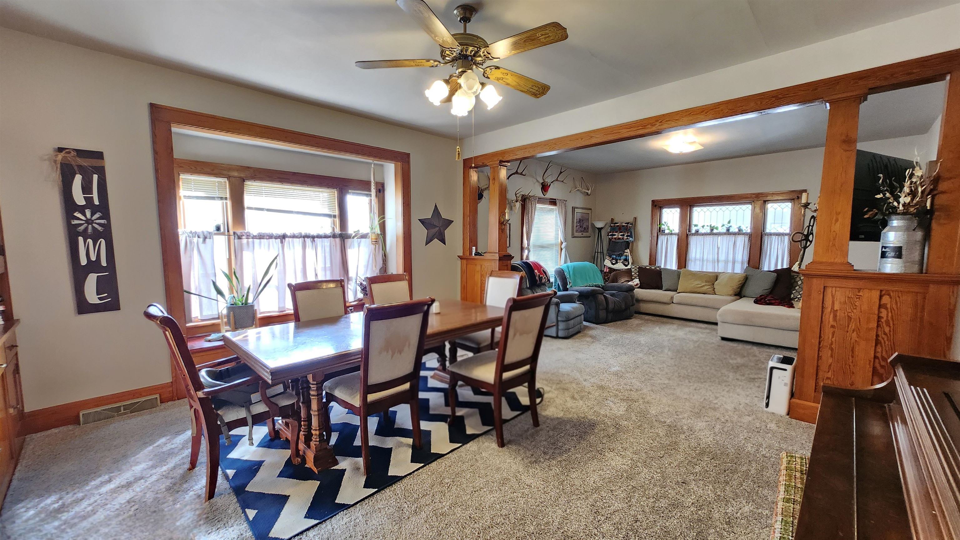 Charming and very well maintained 3 bedroom, 2 bath home situated on an extra large corner lot! This property features a detached 2 car garage plus two separate storage sheds, offering plenty of space for vehicles, tools, and hobbies. Enjoy the fully fenced backyard perfect for pets, play, or entertaining. The enclosed front porch provides a cozy spot to relax. Inside, you’ll love the beautiful built in wood cabinet in the dining room that adds timeless character and charm. A beautiful home with space, storage, and classic details! Call for your personal tour!
