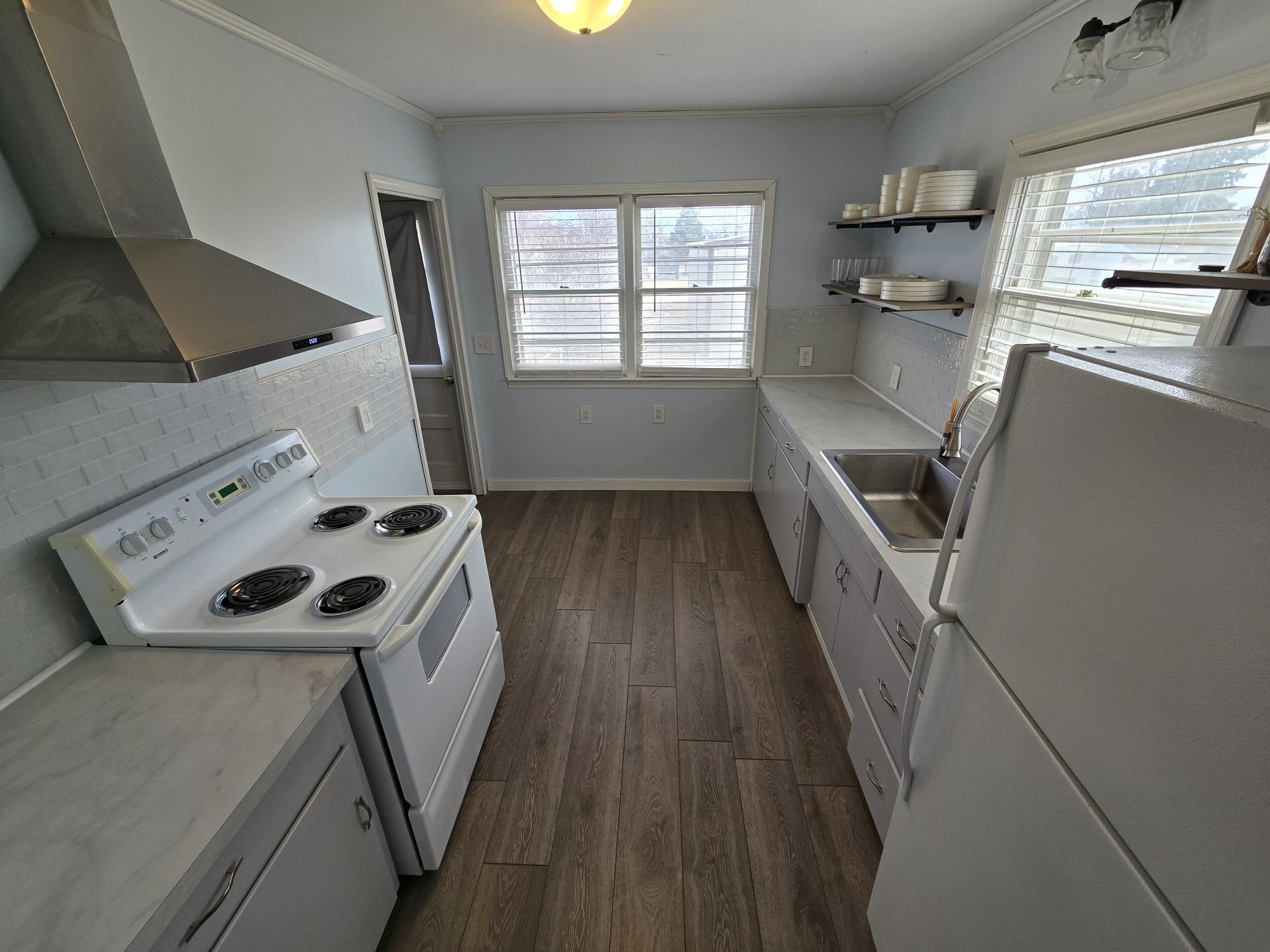 : Electric Range, Refrigerator, Range Hood, Vinyl