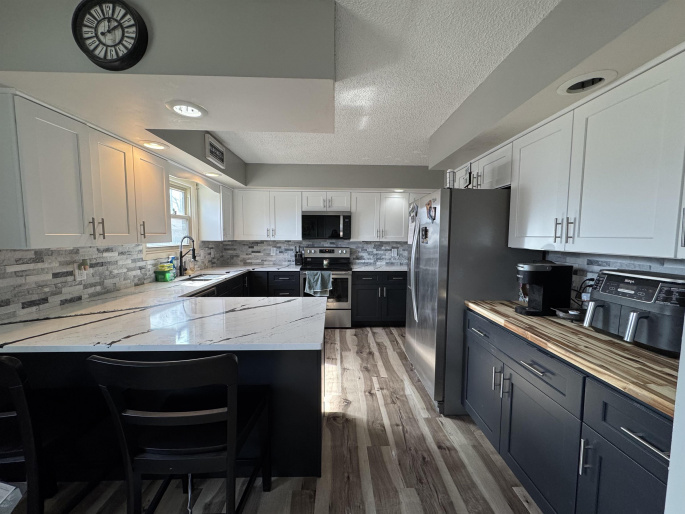 This spacious 1.5 story home offers great functionality, and numerous updates throughout. Featuring 4 bedrooms and 3 bathrooms, this home provides flexible living with both a primary suite on the upper level, and a main floor bedroom. The main floor laundry adds everyday convenience, while the layout offers comfortable gathering spaces including a formal dining room and spacious living room. This home has seen many recent updates, including a beautifully remodeled kitchen with new cabinets and countertops, updated bathrooms, and newer paint and flooring throughout, giving the home a fresh feel while maintaining its charm. Step outside to enjoy the private fenced backyard with underground sprinklers, complete with a pool and spacious back patio and deck, creating a great setting for relaxing or entertaining. A partial basement provides additional storage and utility space. With its thoughtful updates, functional layout, and inviting outdoor space, this home checks all the boxes! Call today for your personal showing!