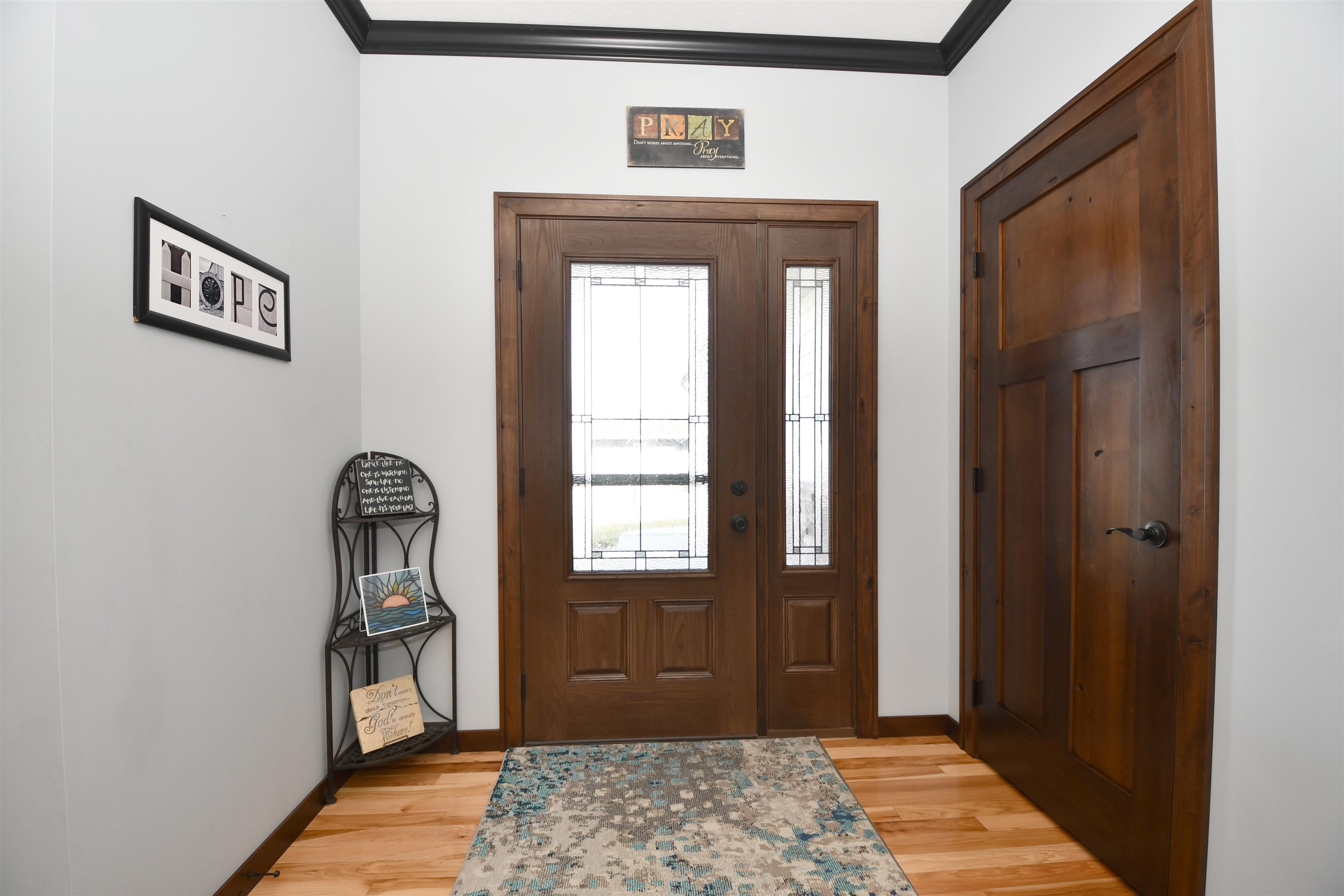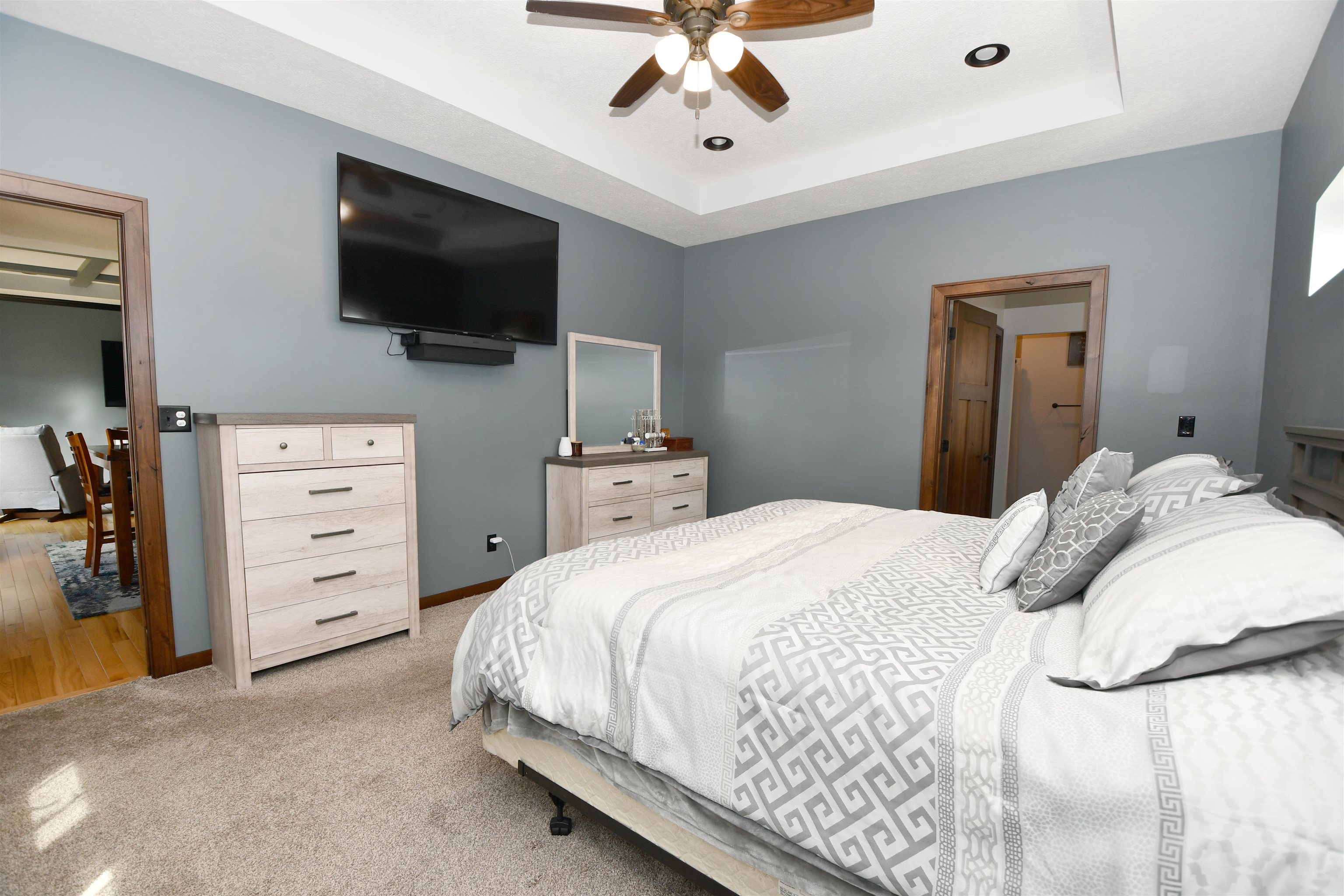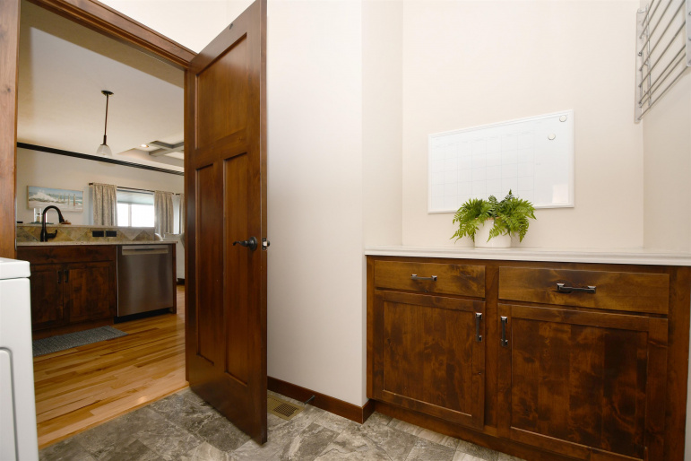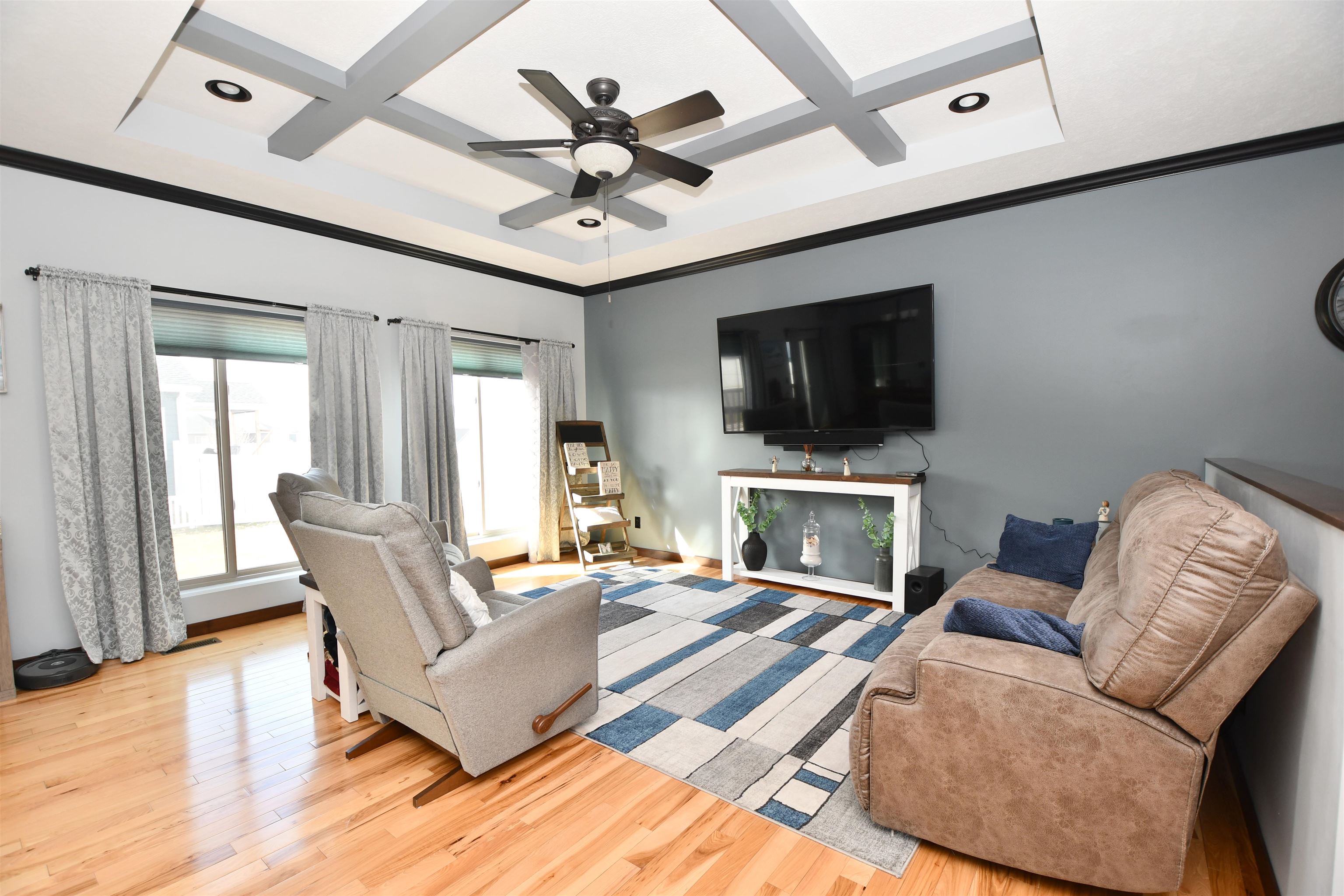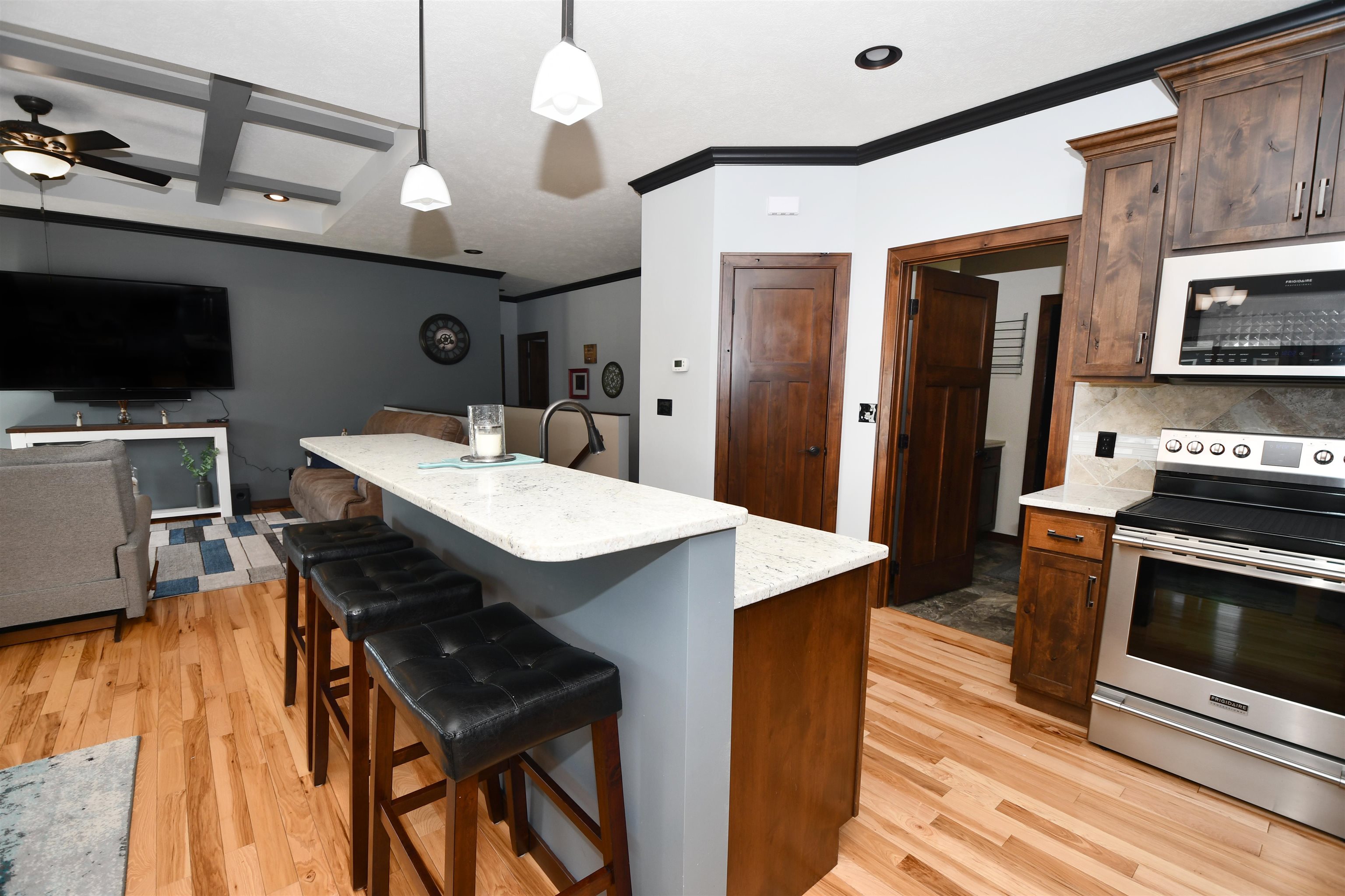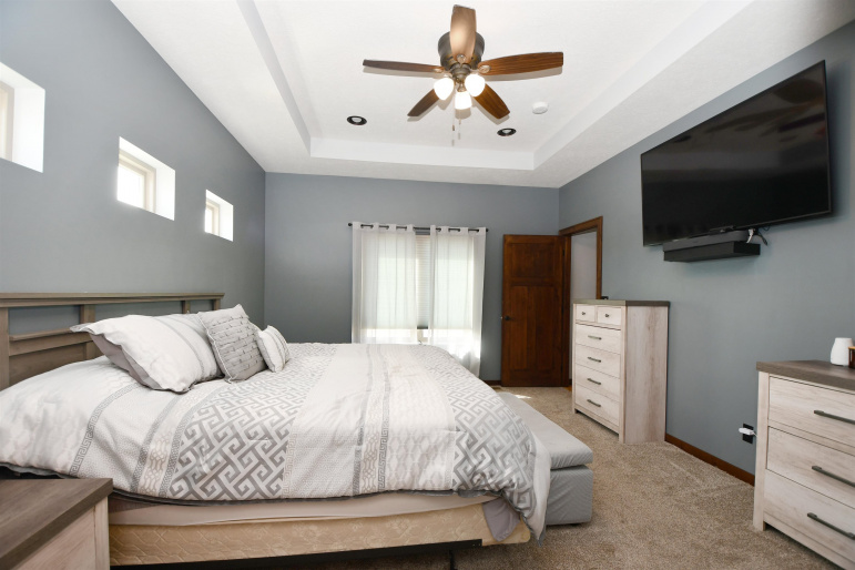 This custom-built, all electric, ranch-style home in northeast Kearney offers zero-entry access and exceptional attention to detail throughout. Featuring 6 bedrooms and 3 bathrooms, the layout is both functional and beautifully designed for everyday comfort and entertaining. The kitchen is a standout, showcasing granite countertops, a walk-in pantry, soft-close cabinetry, tile backsplash, stainless steel appliances, and under-cabinet lighting for an elevated finish. Wood flooring extends through the main living spaces, with an open floor plan that creates seamless flow throughout. The spacious master bathroom offers a tiled walk-in shower, double vanity, and an expansive closet that conveniently connects to the laundry area. Additional highlights include Andersen windows, fully finished 3 car garage, underground sprinklers, large family room, and upkeep that makes this home truly move-in ready. Step outside to enjoy a fully vinyl-fenced yard, professional Curb-It landscaping, a covered deck perfect for relaxing or entertaining, and a storage shed for added convenience. Exceptionally clean, this home is a rare find in a desirable Kearney location.