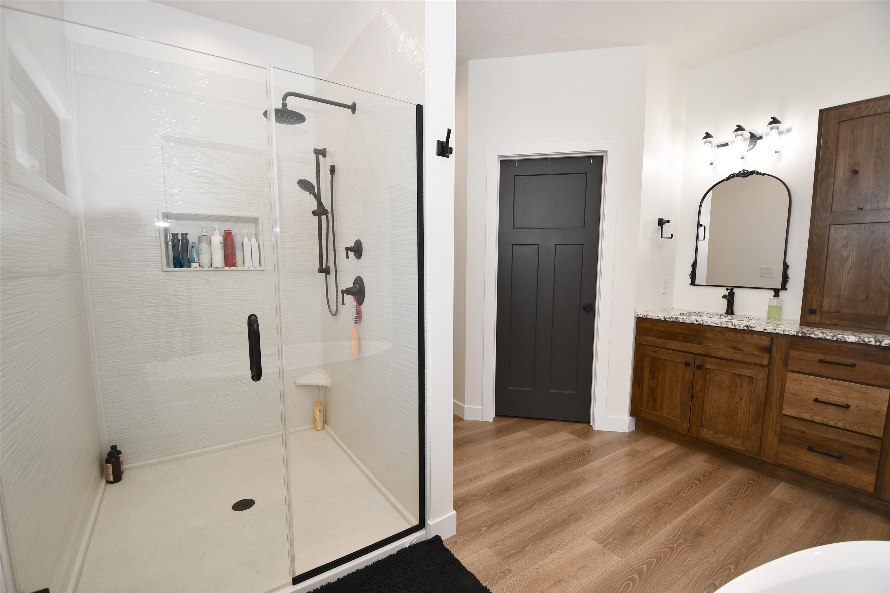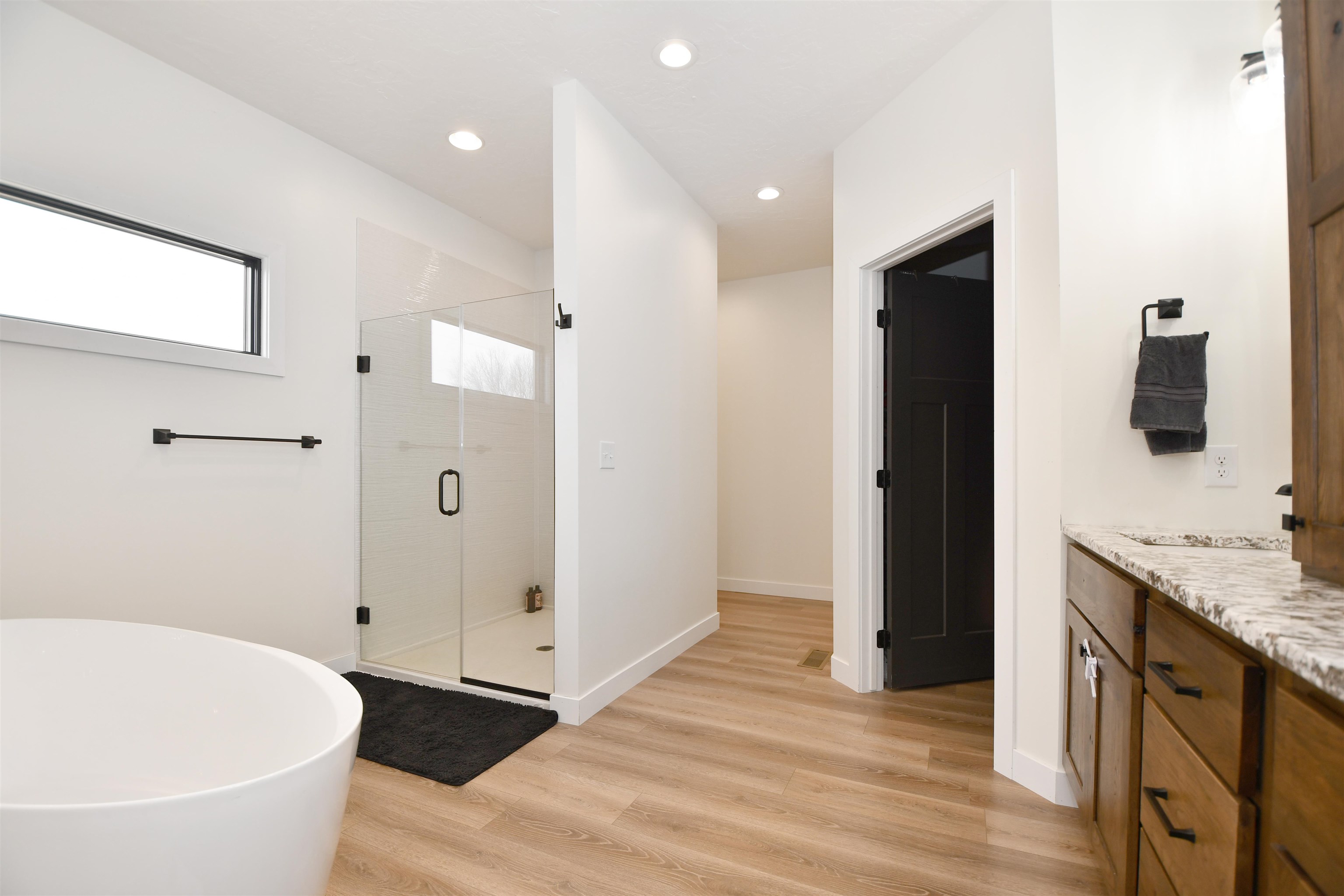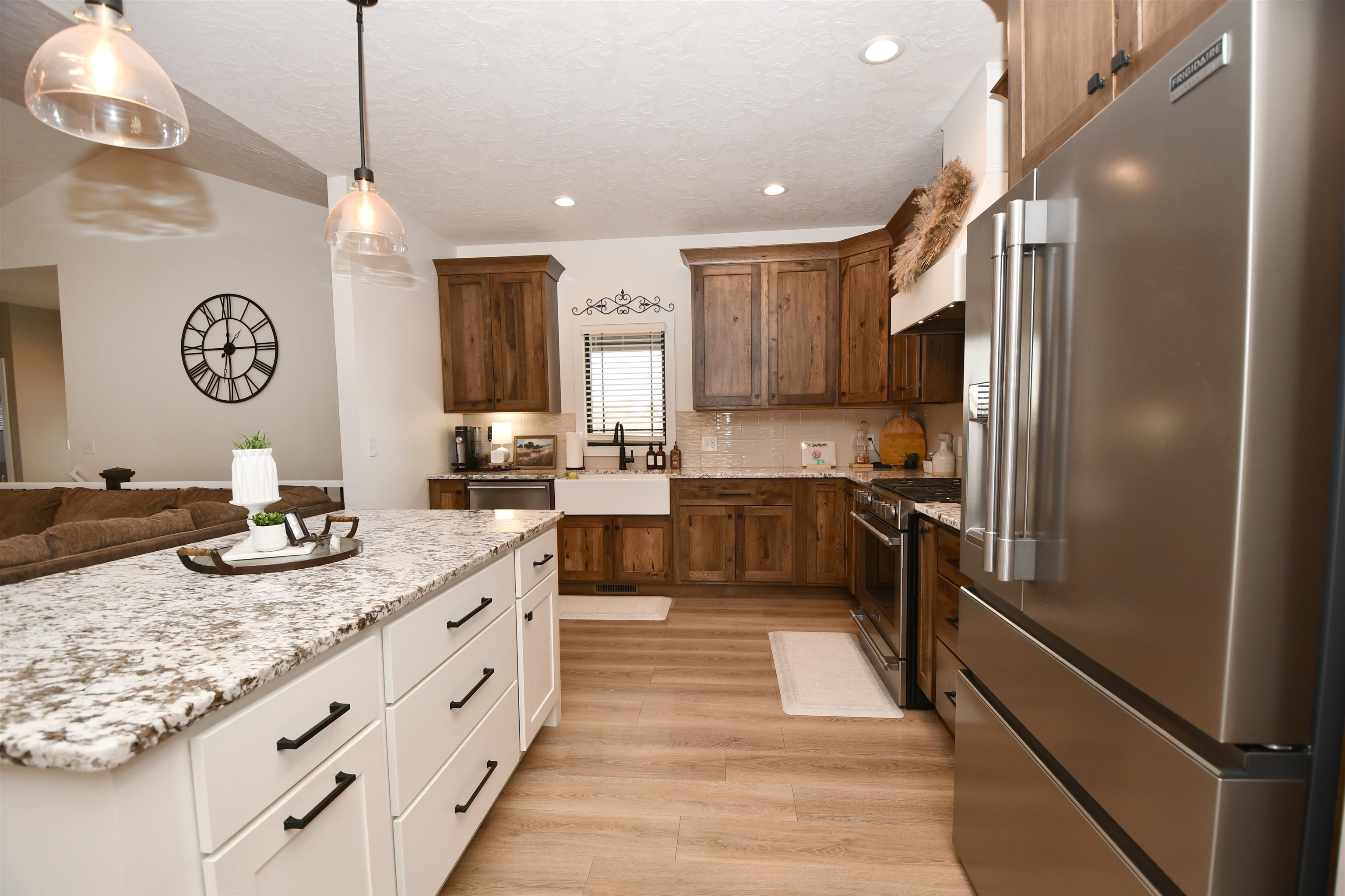 Spacious ranch style home sitting on a 1.02 acre lot Northwest of Kearney! Built in 2022 this home features 6 bedrooms plus an office and 4 bathrooms!! The front entry offers a warm welcome with large French Doors and stained car siding ceiling with can lighting. The main floor has an open concept with two guest bedrooms and a guest bath off the entry way as well as a nice sized office. The living room features a fireplace with space for a TV above. The primary bedroom has a sliding door which guides you into your own private bathroom. There is a double sink vanity, a large soaking tub, a glass front tile shower and a big closet with built in cabinetry. Back to the main living room there is a double door to the covered patio with the same matching car siding and is plumbed for both water and gas. Kitchen features beautiful granite countertops and updated Frigidaire Professional appliances. The dining area has a nice bump out for plenty of space for a table. Down the hall is a massive pantry, a laundry room with extra storage and a bathroom right off the 3 car garage which also has extra space for a workbench. Downstairs the space continues with a large living room and a bar area which has already been started. (seller will leave any supplies they have for the bar area). There are 3 more bedrooms which need minimal finishes to be complete. There is another full bathroom with double vanity sink. A safe/gun room and mechanical room are also on the list for the basement! Other upgrades include a tankless gas water heater, water softener that stays, myQ Garage Door Openers and an electric garage heater. Home is plumbed for a sprinkler system at the well. Make your appointment today! Room sizes are approximate and square footage is according to court house records.