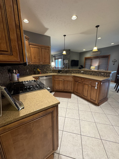 This stunning 5-bedroom, 3-bathroom home offers exceptional space and modern comfort in Grand Island. The open-concept main level flows beautifully from the living room through the kitchen and breakfast nook, anchored by a cozy gas fireplace that efficiently heats the entire area. A formal dining room provides elegant entertaining space, while the main-level laundry room adds daily convenience (with basement hookups available if preferred). The primary suite is a true retreat, featuring a private bathroom with a luxurious jetted tub and a spacious walk-in closet. Outside, enjoy a covered deck overlooking the fully fenced backyard with included play equipment, perfect for gatherings and outdoor fun. The finished basement provides two additional bedrooms, a large recreational room, and generous storage. Completing this exceptional property is a 3-car attached garage.