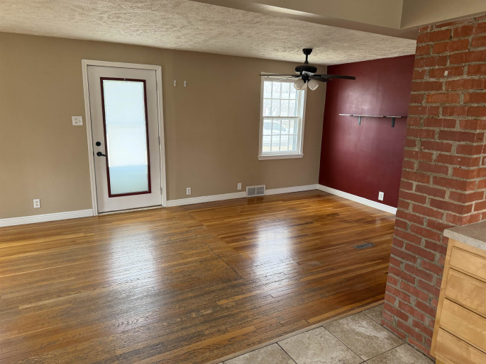 Check out this charming brick house complete with 3 bedrooms and 1 bathroom! It features two bedrooms upstairs and a large master bedroom downstairs with a walk in closet. Out back you will find a fenced in yard with access to the garage and a firepit. There are many updated features including Bluetooth in the bathroom and a newer roof. Call for a showing today!