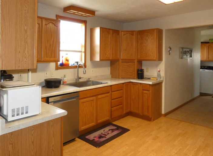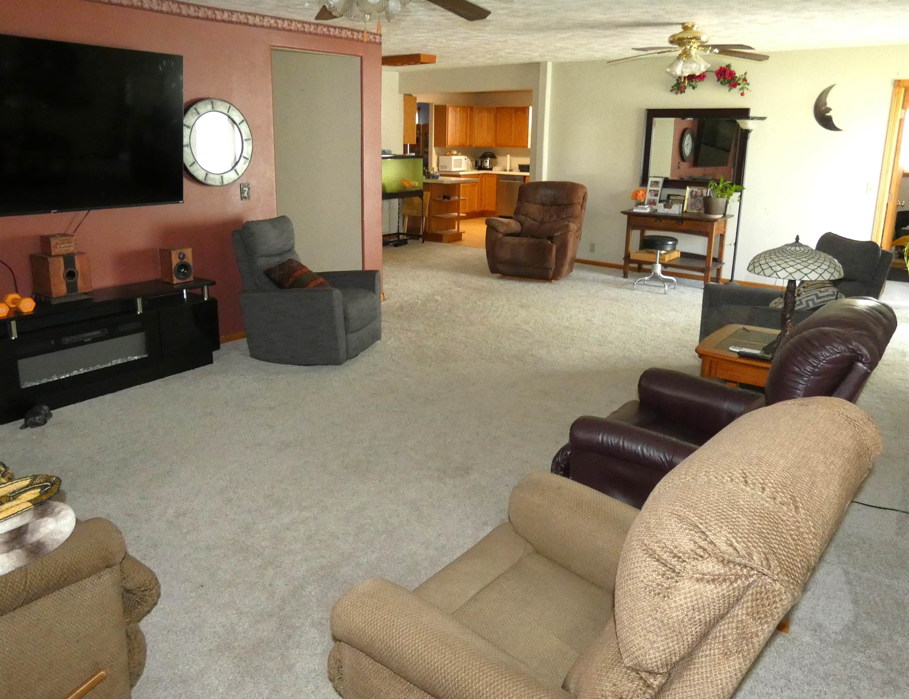 Sprawling bungalow style house with almost 2000 square feet in the main floor. Large rooms, with a very large primary suite. Recently remodeled and many recent updates, this home is move-in ready. Property sits on a very large lot with a finished, insulated and heated detached garage that can hold 4 cars, and a shop that could hold more that has overhead doors on both ends. Basement is unfinished, but very clean. It would make great storage space or a comfortable storm shelter. BR4 above is the Entryway on the South side of the house and BR5 is a room between the living room and kitchen that could have many uses. Easy living at a great price! Info according to Dawson County Assessor.