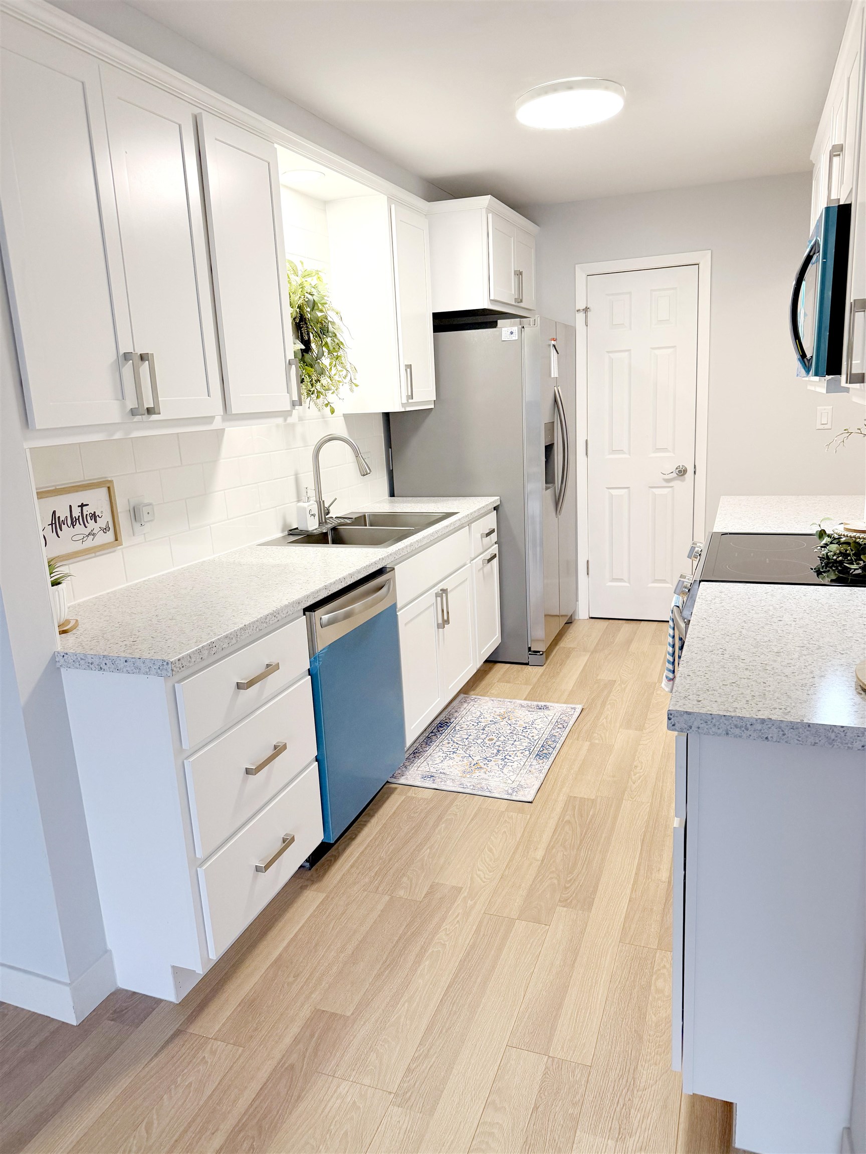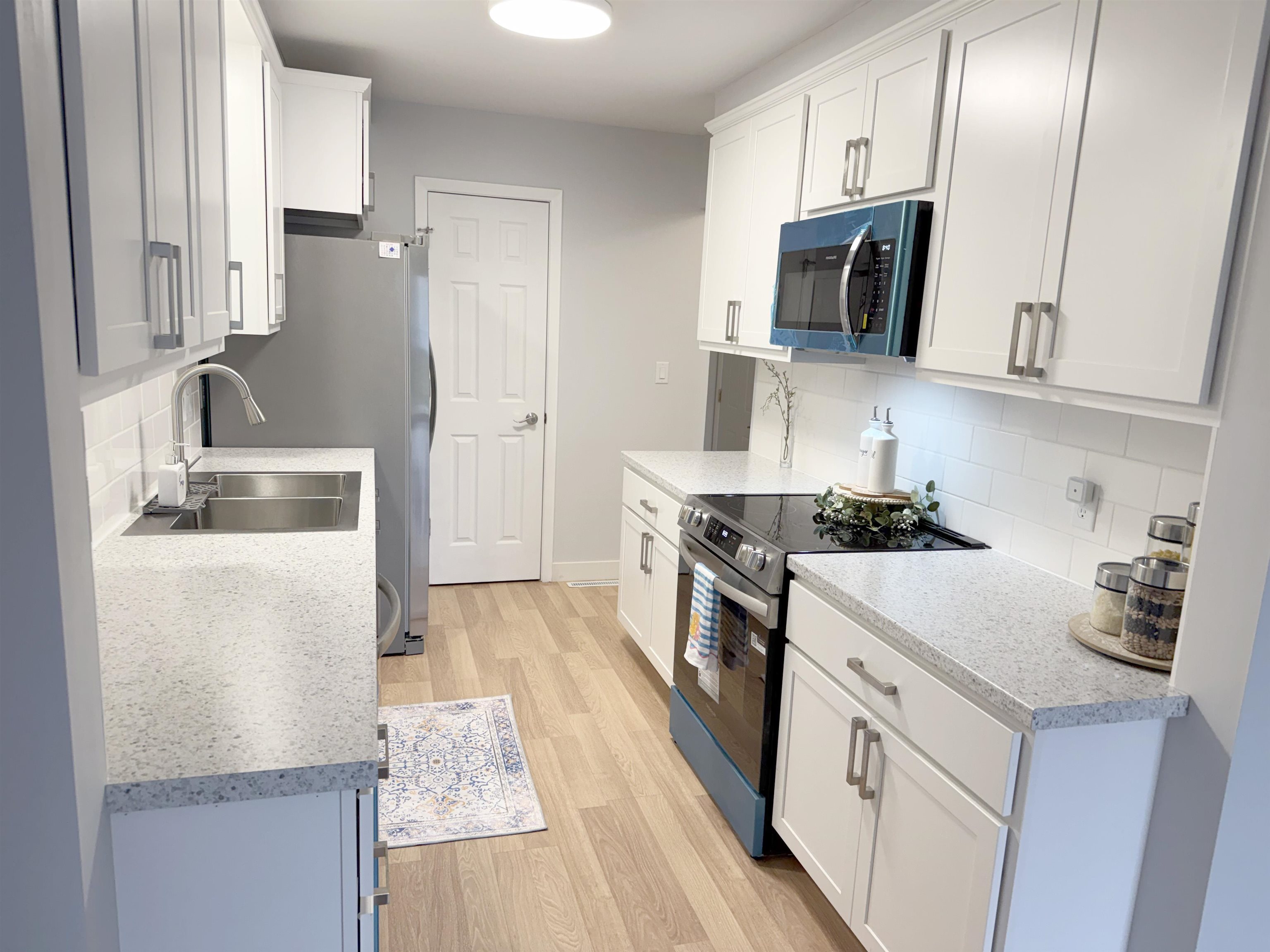 : Electric Range, Dishwasher, Garbage Disposal, Refrigerator, Microwave, Pantry, Vinyl