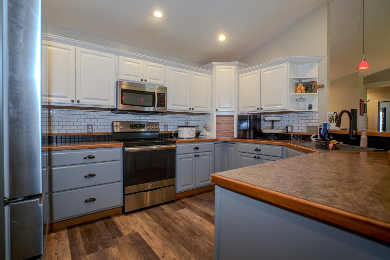 : Electric Range, Dishwasher, Refrigerator, Microwave, Eat-in, Vinyl