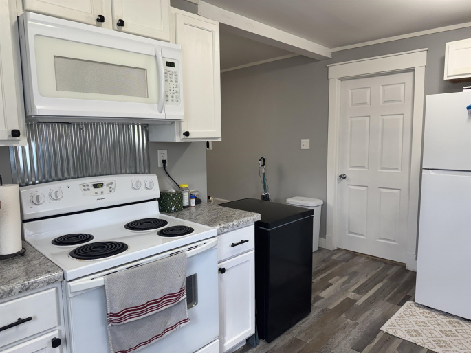 : Electric Range, Garbage Disposal, Refrigerator, Microwave, Vinyl